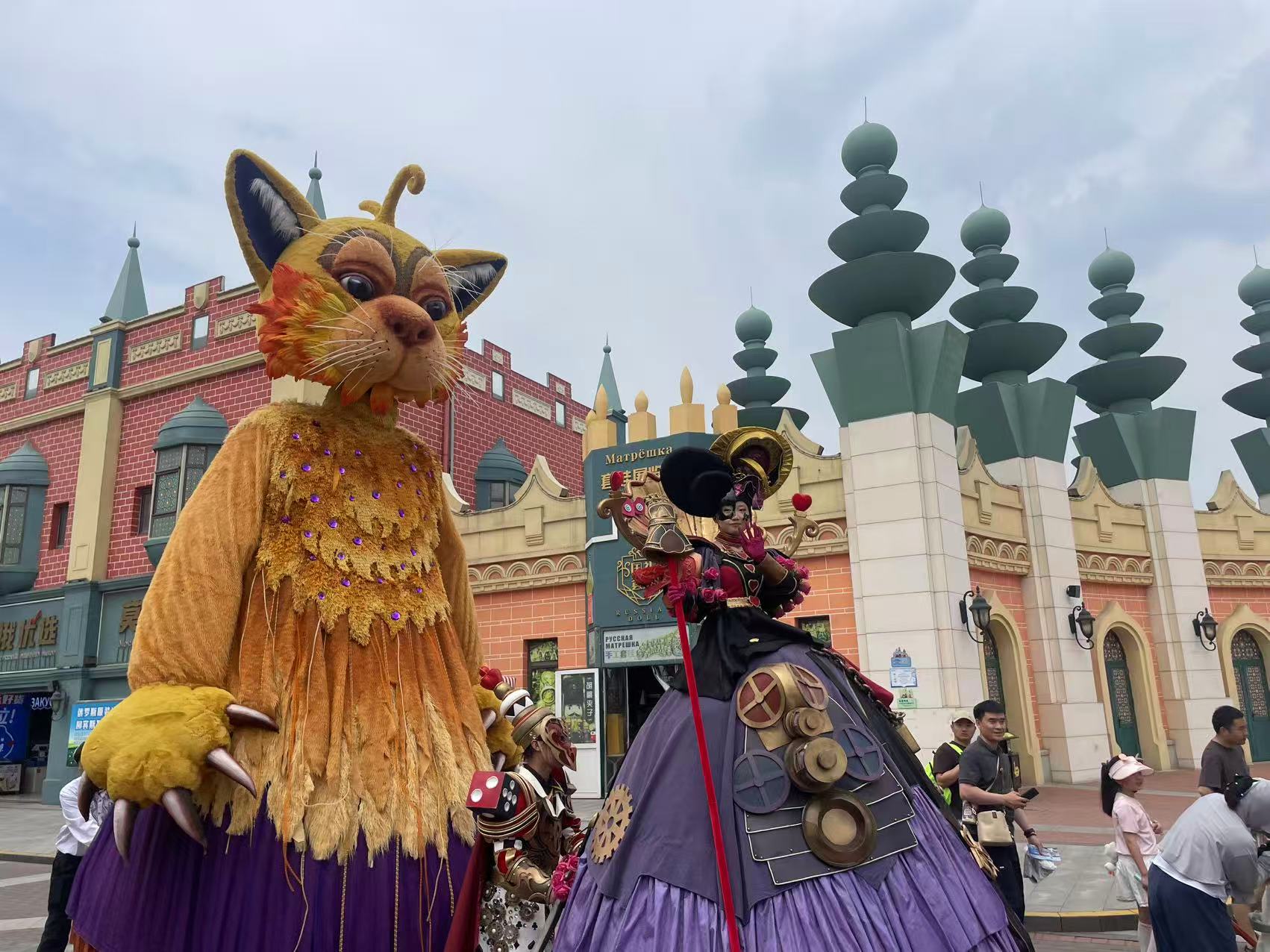 这个假期,公园首次“爆趣米花节”正式启幕,为市民游客带来夏日的专属浪漫。记者在园区内看到,为让市民游客在园区“可玩、可赏、可尝、可学”,园区不仅打造了“指尖艺韵”非遗手作工坊,让大家近距离感受非遗文化,体验“指尖上的东方美学”,还设置了沉浸式童话演绎活动:5米高巨型布莱猫化身童话使者,领衔《蒸汽朋克爱丽丝奇幻之旅》在文化商业街,红心皇后、疯帽子等经典角色,与游客开启零距离魔法互动,丰富游客游园体验。