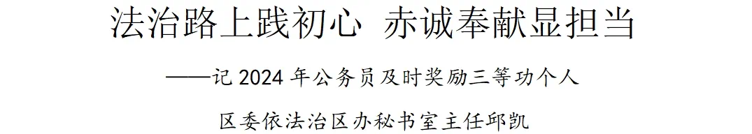津滨网讯(记者 李棽棽)他有着基层公安派出所、公安法制办、政府办调研处和法规处、司法局行政执法监督室等多部门工作经历,他是工作年限累计33年的法治战线老兵,他坚守法治信仰,甘当法治建设和依法行政“燃灯者”。他把为民情怀、法治思维、创新能力相融合,发生了“化学反应”。他就是区委依法治区办秘书室主任邱凯。在推动全区法治建设和依法行政的道路上,他蹄疾步稳、全力以赴,争做贯彻落实习近平法治思想的积极践行者和加快推进法治政府建设的排头兵,为全区深化改革、高质量发展贡献法治力量。