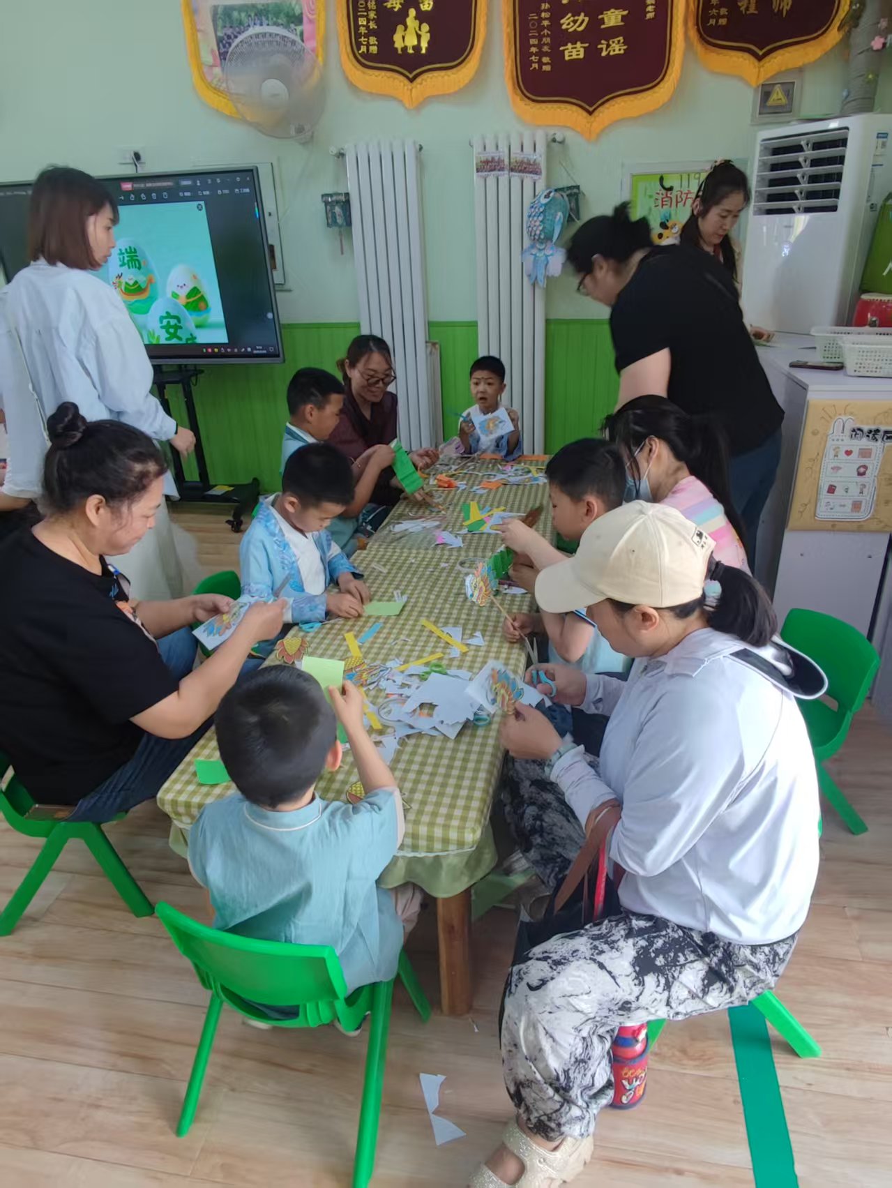 启爱幼儿园里不时传出家长和孩子的欢笑声,家长陪同孩子们共同绘画创作独特风格的剪纸手工,孩子勾勒涂色,家长装订剪裁,不一会儿,一件件精美的剪纸画“新鲜出炉”。还有“射五毒”小游戏及“小龙舟”手工制作等,给孩子们提供了展示自我、锻炼能力的平台。