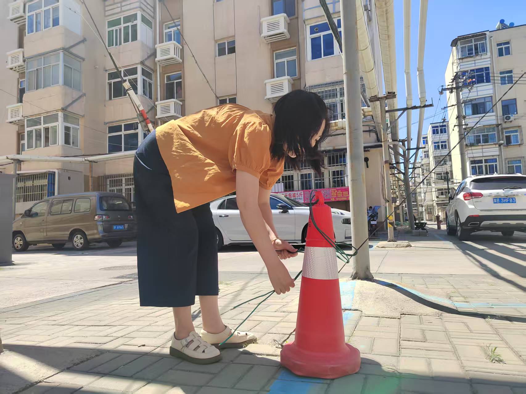 隐患虽已初步处理,但彻底清除需专业施工。社区负责人立即联系专业队伍,确保后续根治。网格员在障碍物周围醒目设置了三角警示柱,并细心用铁丝牢牢固定于周边设施,严防大风刮走。她在微信群中及时发布警示,提醒往来居民和车辆注意绕行,织就了一张由责任和关怀构成的“安全网”。