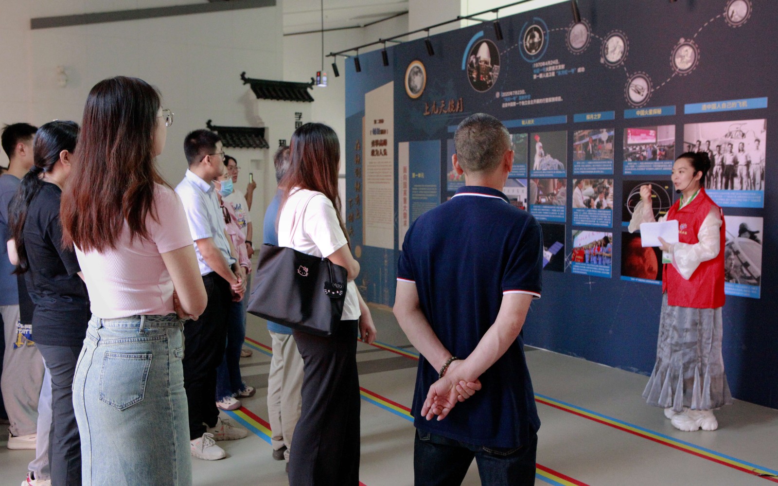 现场观摩环节,与会科技志愿者来到生态城素质教育基地,开启了一场震撼心灵的科学家精神溯源之旅。在六大精神展区,从古代四大发明到现代航天科技,从科学家手稿原件到沉浸式科技发展史场景,鲜活的史料勾勒出中国科技进步的壮丽画卷。“看到老一辈科学家在艰苦条件下攻克技术难关的手稿,我更加感受到当代科技志愿者的使命之重。”一位基层科协负责人参观后感慨万千。这场别具一格的“科技思政课”,为整个活动定下了“以科技精神铸魂,以志愿行动赋能”的基调。