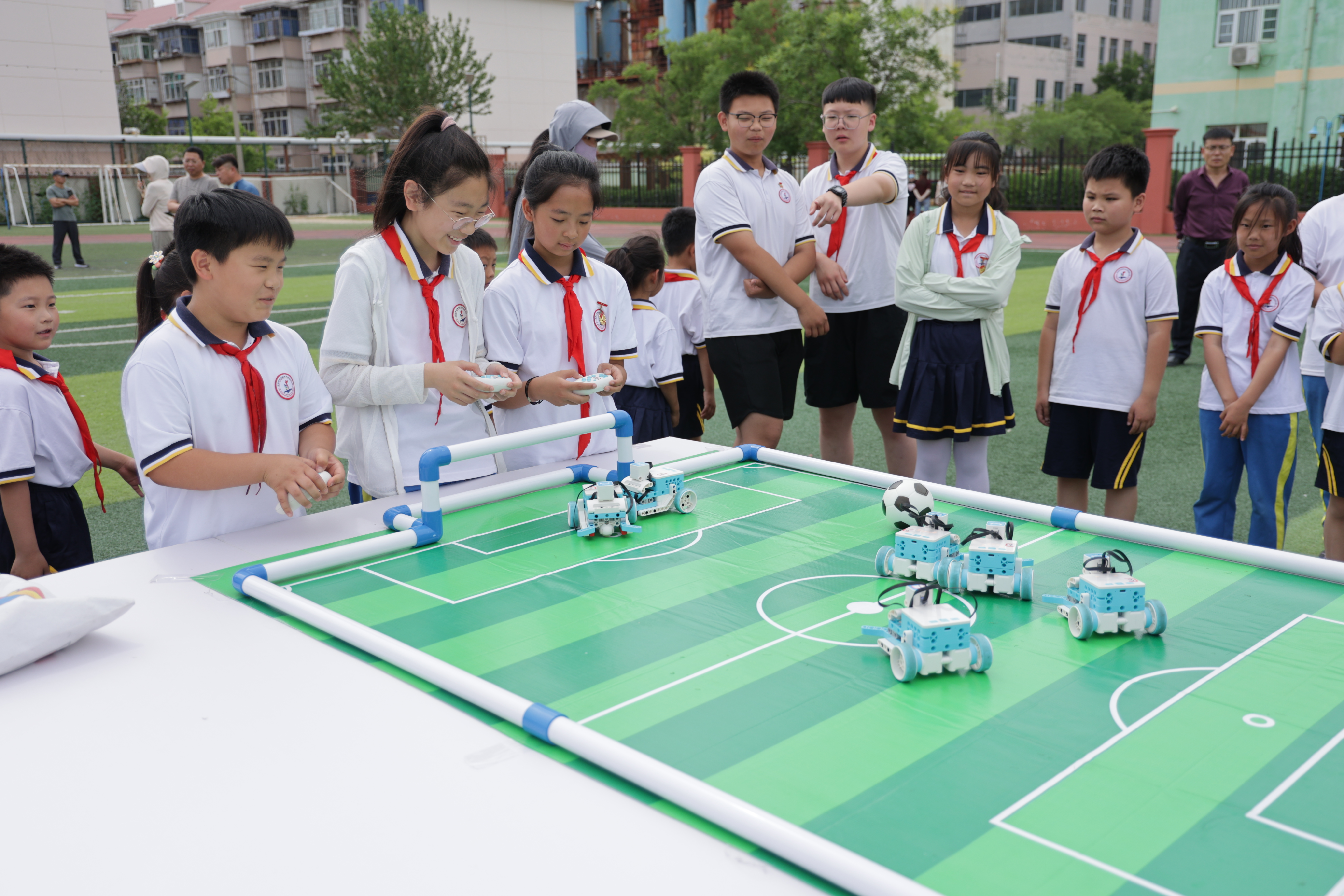 绿茵争锋之机器人足球大赛成为智慧碰撞的焦点,编程机器人化身敏捷“球员”,学生们在迷你球场上展开激烈攻防,策略与技术的完美结合令人叫绝。