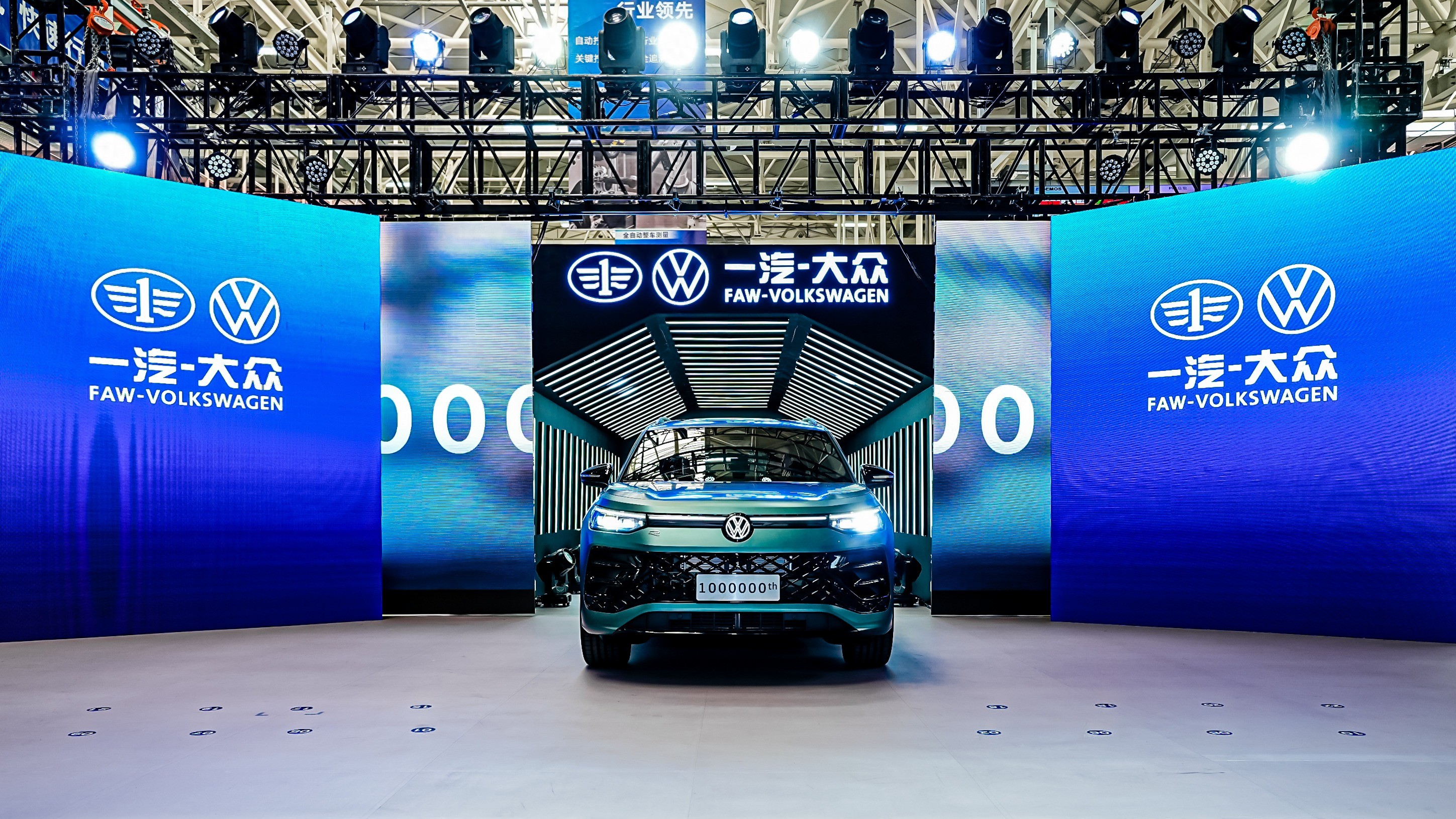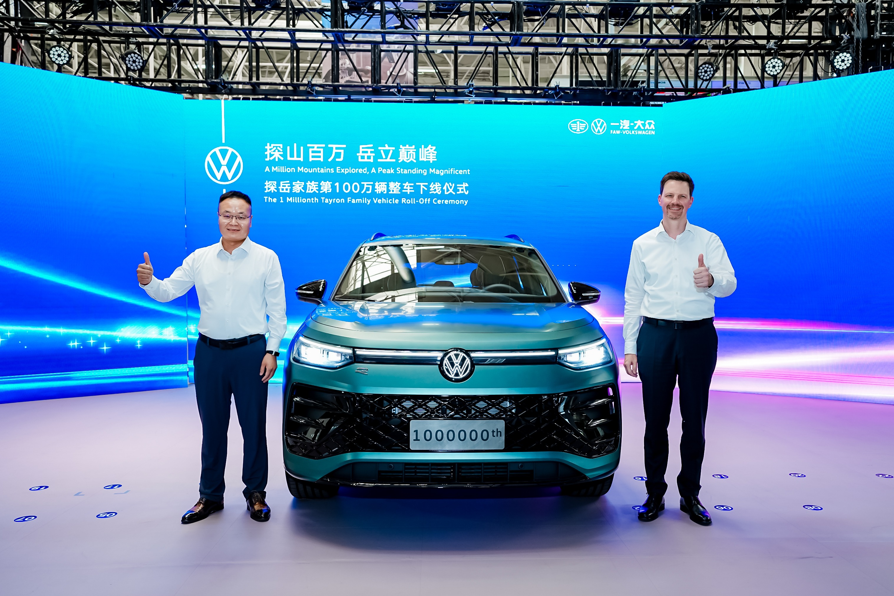 一汽-大众天津分公司党委书记、总经理高解放与外方总经理李安博士共同完成探岳家族第100万辆下线
