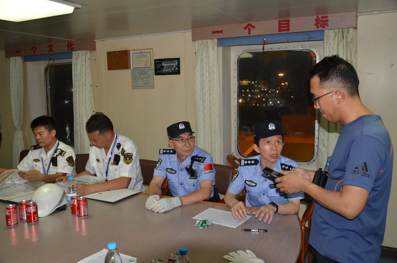 津滨网讯(记者 李岳泽 通讯员 王文信)为切实加强对辖区在港船舶的监管力度,根据相关工作需要和合作机制,6月5日晚,天津边检站联合海事局、港口派出所等相关口岸单位,依照本单位的职责范围和管理权限,对辖区某轮进行了联合登轮检查,并对检查出来的问题提出整改意见和时限。