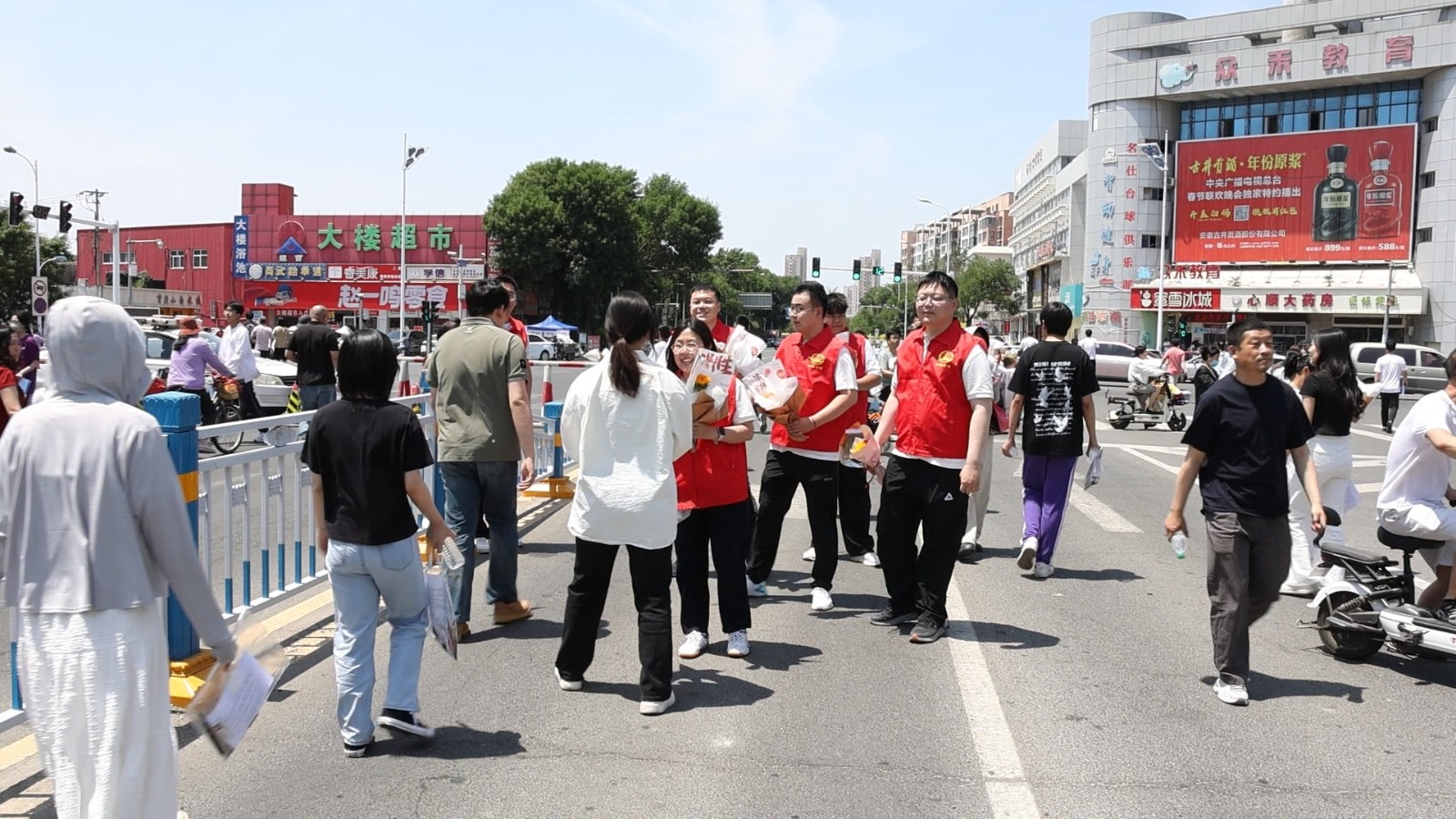 一大早,青年志愿者开始搭帐篷、摆桌椅,摆放考试文具、矿泉水、雨伞、药品等,做好为考生服务的准备工作。7点多,考生和家长们陆续到来,志愿者们也开始忙碌起来,他们身穿红色马甲,满脸笑容,为他们提供临时休息的场所。“别紧张,放轻松,发挥出自己应有的水平。”面对紧张的考生,志愿者们鼓励他们放平心态,从容面对高考。考试开始后,志愿者们把翘首以盼的家长们请到帐篷下休息,为他们递上扇子和矿泉水。“真的谢谢你们,真是有责任的央企!”考生家长对志愿者们周到细致的服务连连称赞。首场考试结束后,志愿者们还为考生送上了寓意“一举夺魁”的向日葵,祝福考生都取得理想的成绩。