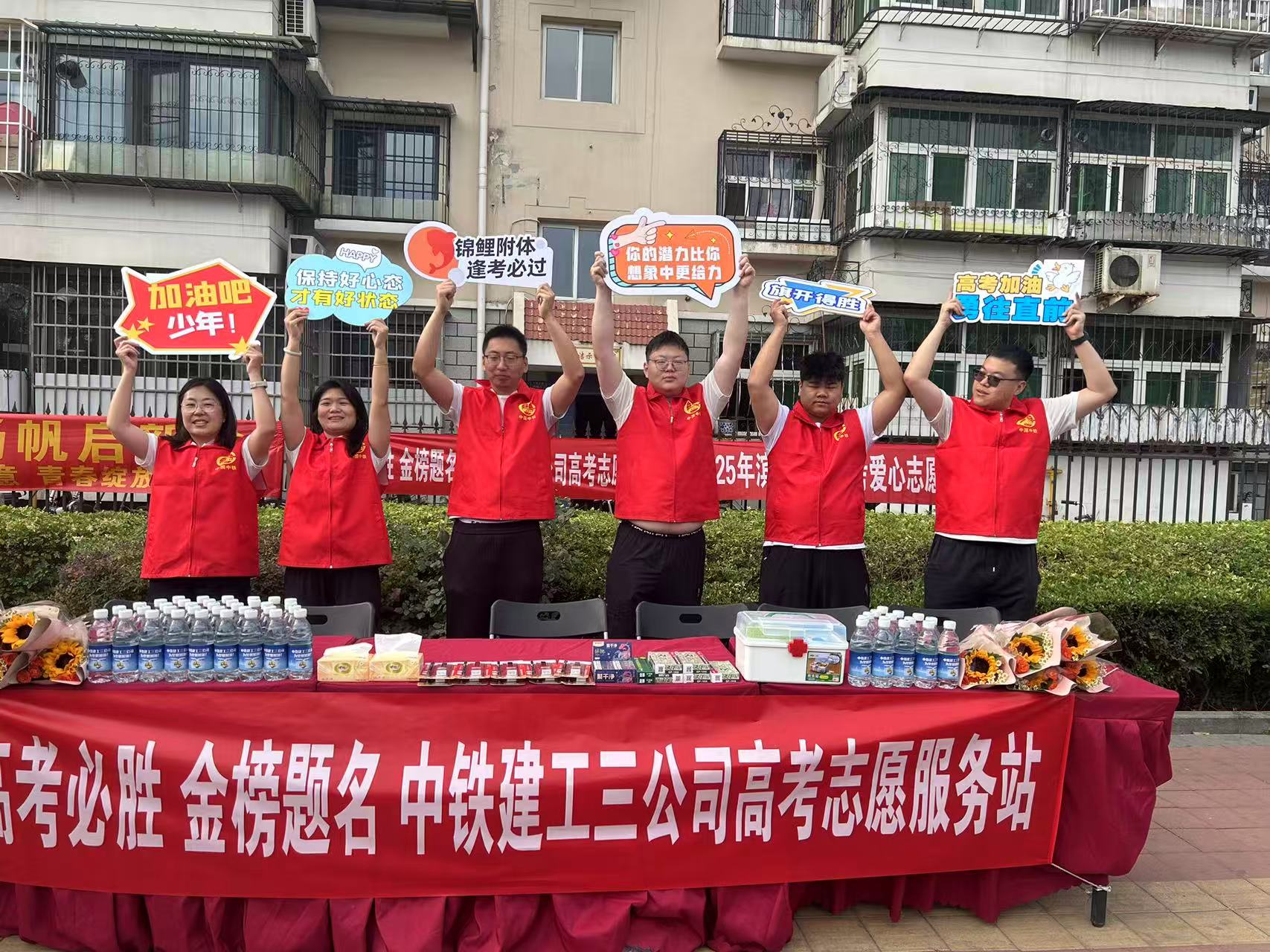 津滨网讯(记者 王晨露 高国明 摄影报道)又是一年高考季,6月7日,中铁建工三公司团委积极响应团区委、区青志协号召,组织开展“为梦想加油”高考志愿服务活动,在汉沽一中设立高考爱心服务站,进一步擦亮滨城“小浪花”青年志愿服务品牌,切实为考生及家长创造温馨、舒适的迎考氛围,助力广大考生安全顺利参加考试,以实际行动践行央企社会责任,传递社会关怀。
