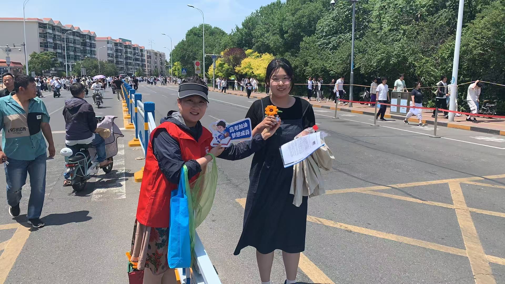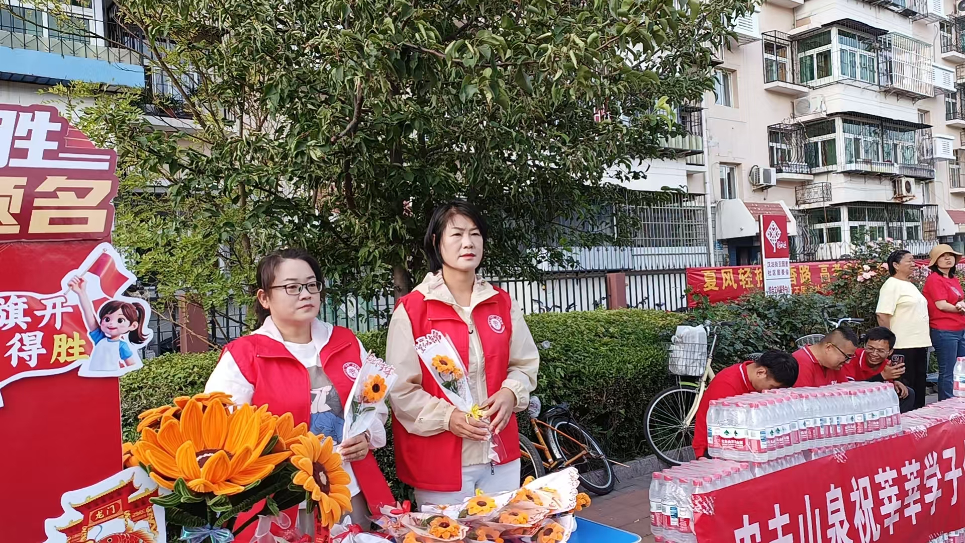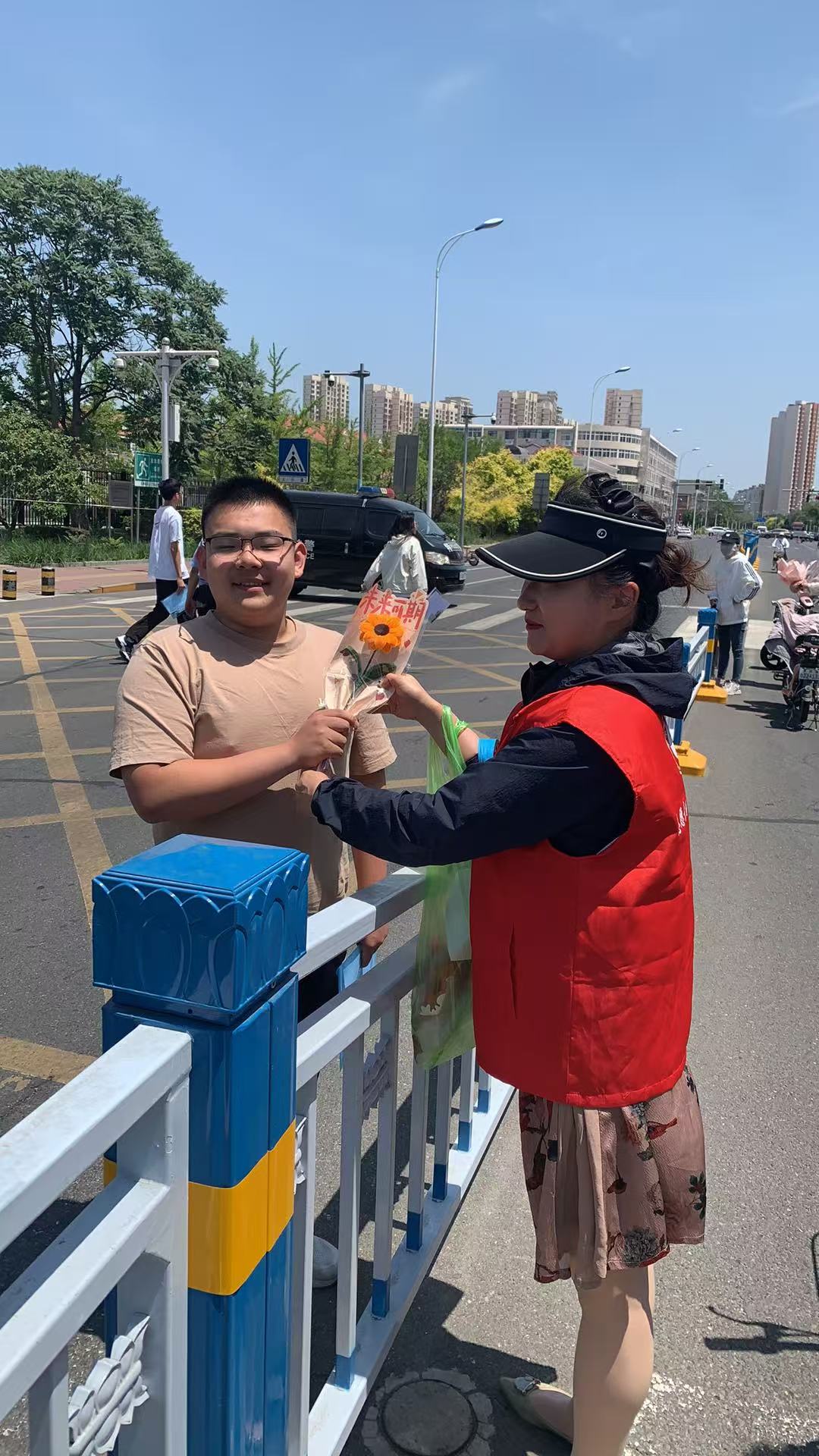 与此同时,在考点外焦急等待的家长们也收到了这份特别的礼物。一位家长接过向日葵,眼中满是感动,激动地说道:“看到这些向日葵,孩子心情放松了不少,真的很感谢社区!你们想得太周到了!”这份来自社区的关怀,让家长们在紧张的等待中感受到了温暖与力量。