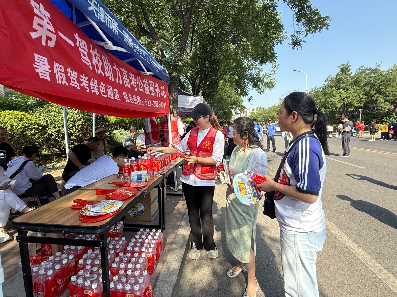 早上八点,记者在滨海新区塘沽紫云中学考点看到,志愿者们不仅为考生和家长们准备了充足的饮用水和防暑降温用品,还搭建了供考生家长临时休息的遮阳棚。一些志愿者还通过和家长谈心聊天的方式,为他们排解紧张情绪,舒缓心理压力。“高考是孩子们的人生大事,所以对我们来而言,就希望能为孩子和家长们做些力所能及的事情。每年的高考季,我们都会在考场外做志愿活动,会给考生和家长们分发一些小扇子。要是考生们有什么需求,咱们工作人员也会全力地帮助他们、支持他们,让孩子们能更从容地面对高考,也祝愿孩子们高考顺利,金榜题名。”来自天津市第一驾校的志愿者告诉记者。