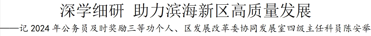 津滨网讯(记者 李棽棽)作为一名脚踏实的一线“发改人”,他时刻牢记自己的使命和责任,以高度的责任感和使命感投入到工作中,他用辛勤成长和工作实绩践行着“不破楼兰终不还”的干事决心,他就是区发展改革委协同发展室四级主任科员陈安举。