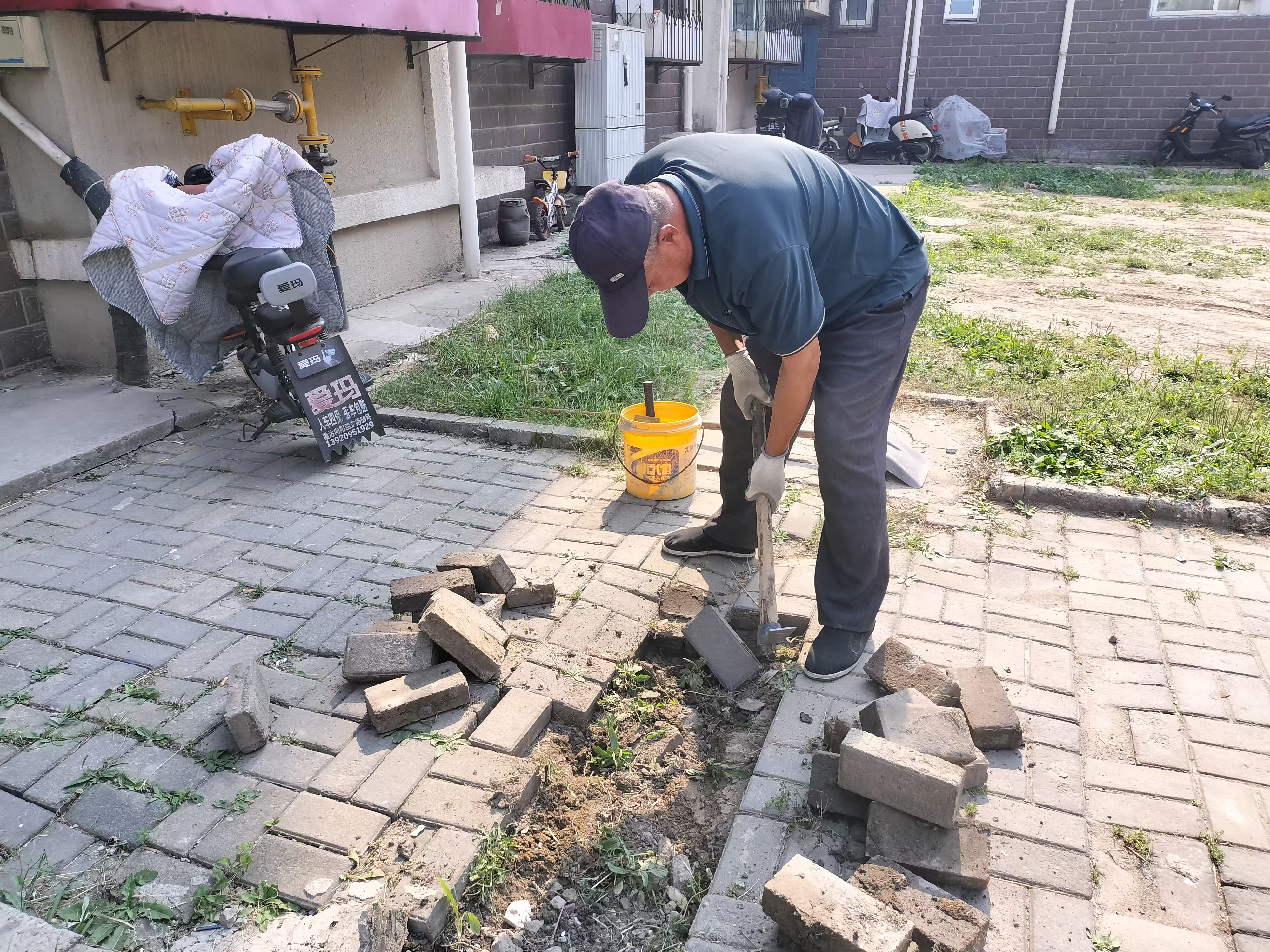 新澳6号楼居民反映楼道出入口地面坑洼不平、碎石裸露,存在安全隐患。“老兵帮帮团”主动担责,分工协作:有的铲除松动水泥残块,有的修补地砖,有的调配水泥填补缝隙。尽管烈日当空、汗流浃背,他们仍干劲十足。经过连续奋战,破损路面铺上防滑地砖,变得平整安全,彻底消除了居民出行的后顾之忧。