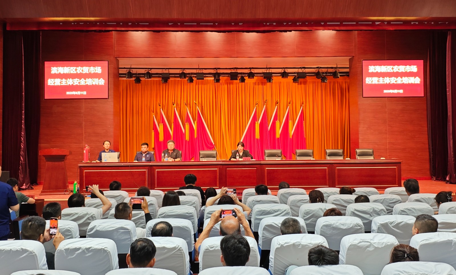 津滨网讯(记者 张倩 通讯员 李富娜 摄影报道)为压实农贸市场经营主体责任,提升安全管理能力,6月11日,滨海新区商务和投促局联合区消防救援支队、区城管委、区住建委,组织召开全区农贸市场经营主体安全培训会,聚焦安全生产隐患排查中暴露的责任落实问题,通过“理论讲解+案例警示+实操指引”的方式,系统强化市场主体在消防、燃气、建筑等领域的安全管理水平,助力市场主体构建系统性安全知识体系。全区100余名相关单位负责人及市场经营主体代表参会。