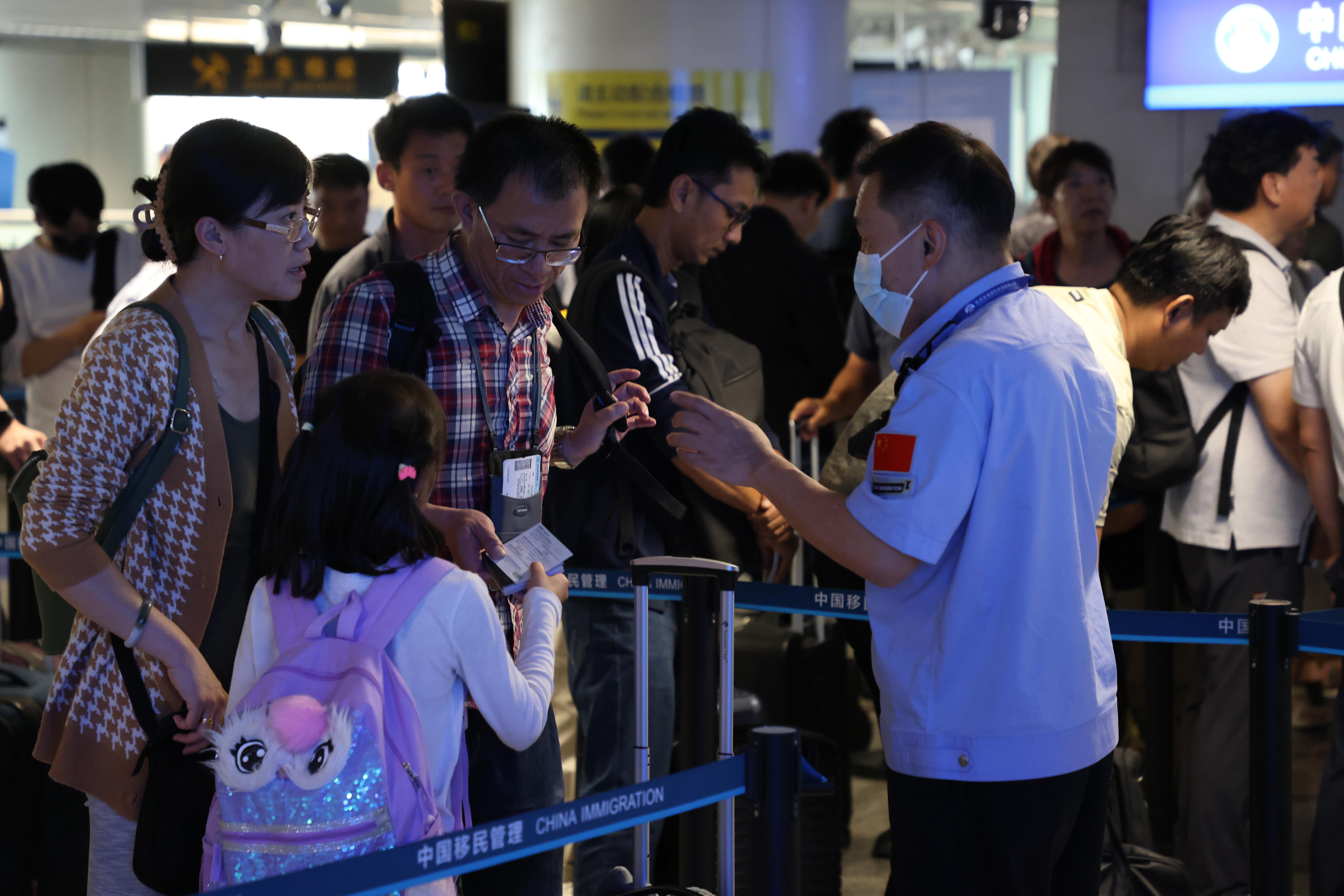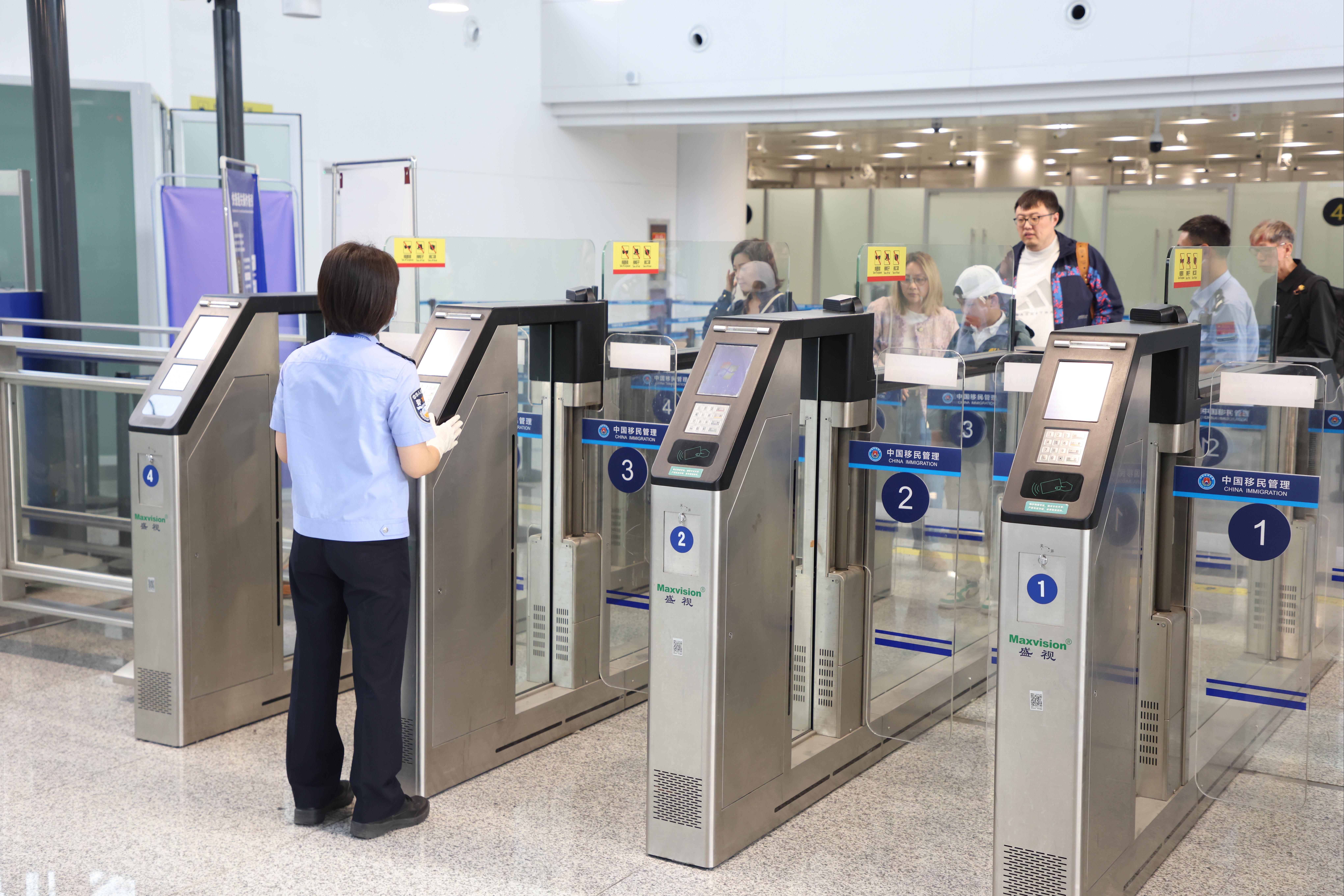 达沃斯期间正好赶上暑期流量高峰,天津机场边检站主动24小时对接机场公司、航空公司等相关单位,提前了解航班人员信息,动态分析研判旅客流量,在醒目位置摆放引导牌,安排专门警力进行现场疏导分流,优化查验流程,科学设置查验通道,合理部署警力,确保达沃斯论坛期间口岸通关高效有序。(天津机场边检站供图)