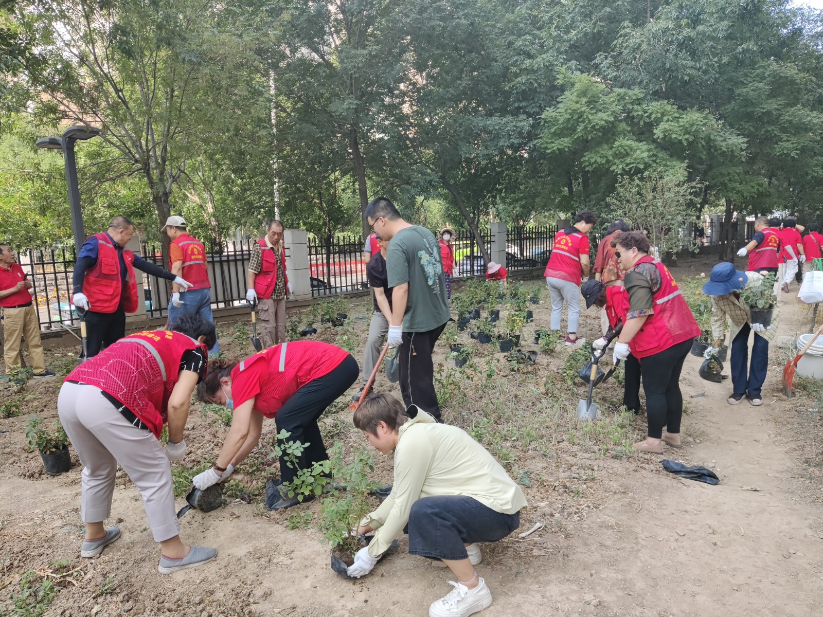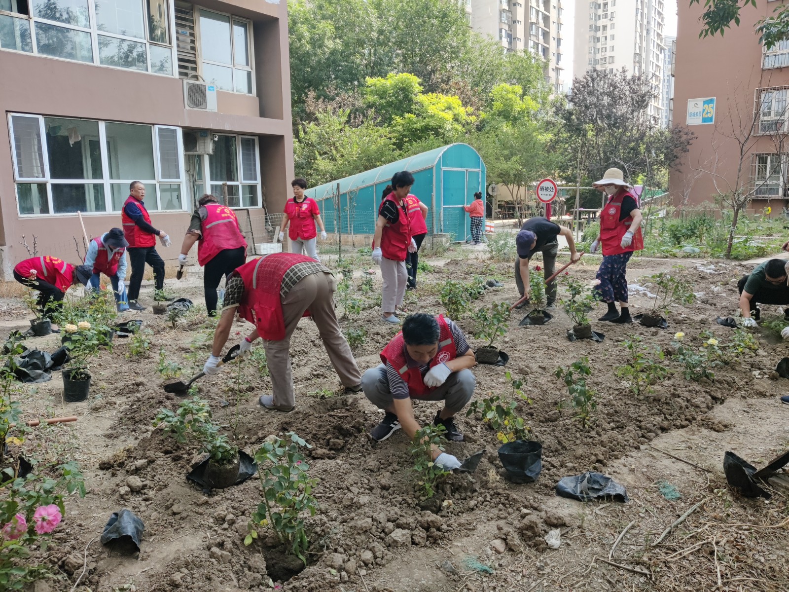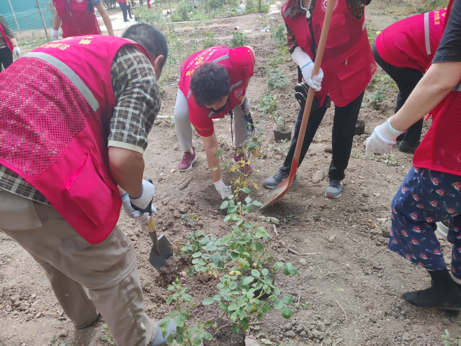 活动中,社区工作人员、志愿者、网格员等带着铁锹、水桶、花苗来到补种点位,大家挖坑、扶苗、填土、浇水,将购置的月季花苗有序“点缀”填充,让原本乏味空缺的荒地逐渐焕发了生机。在志愿者的带动下,周边居民也纷纷加入复绿队伍,协助志愿者栽种绿植,形成了“整治—补绿—共护”的良性循环。