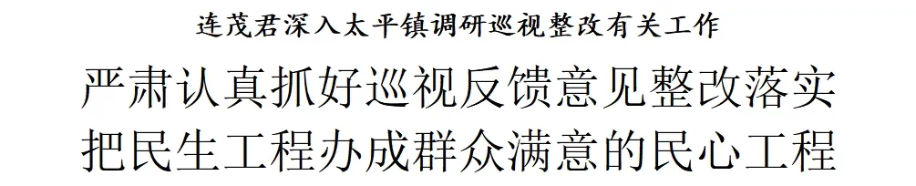 津滨网讯(记者 徐晶晶)6月17日,区委书记连茂君深入太平镇调研巡视整改有关工作。他强调,要深入学习贯彻习近平总书记关于巡视工作的重要论述和视察天津重要讲话精神,严肃认真抓好巡视反馈意见整改落实,确保问题认真整改、有效整改、全部整改。