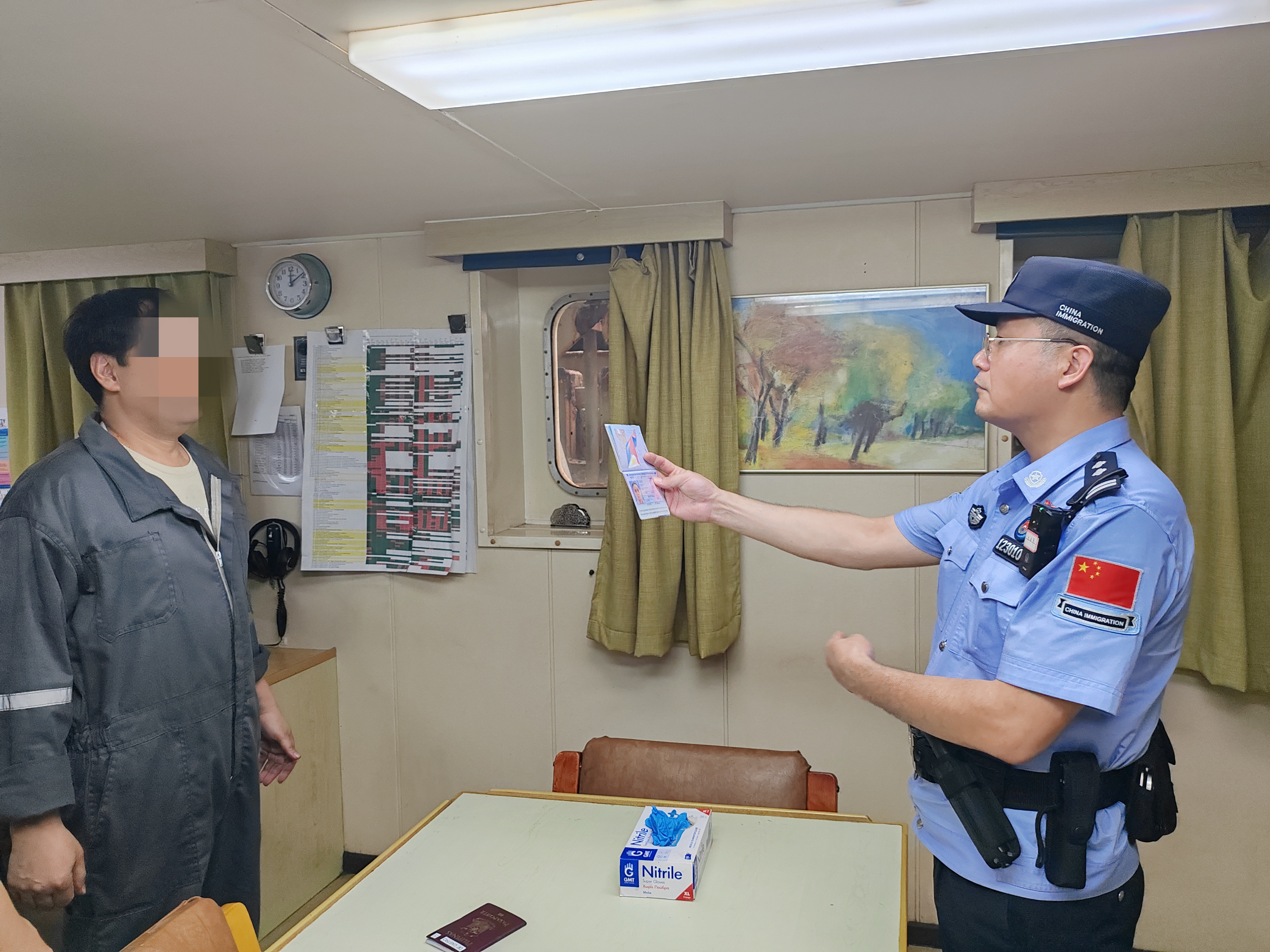 今年以来,东疆边检站已多次为南美车厘子快线、进口种牛等运送鲜活产品的船舶开通“绿色通道”,不断为国内消费者“果盘”“菜篮子”增添更多新货、鲜货。下一步,东疆边检站将持续紧盯口岸形势特点,着眼于企业提质增效的实际需求,主动帮助企业解决难题,积极落实“三零举措”“速审直推”等举措,不断优化通关流程,提高通关效率,全力营造优质高效便捷的通关环境。(东疆边检站供图)