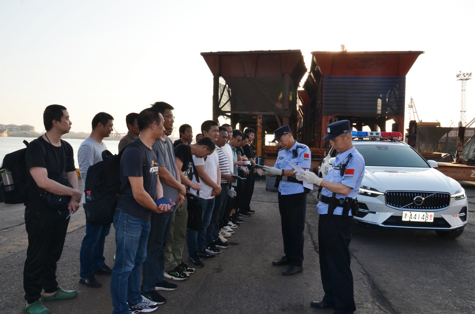 津滨网讯(记者 李岳泽 通讯员 王文信)6月21日晚18:30许,停泊在天津港锚地的马绍尔籍“新海洲大连”轮上的19名换班船员搭乘拖轮抵达码头。接报后,天津边检站派遣民警第一时间赶赴码头,将19名换班船员护送至该站证检现场,执勤民警随即为其快速办理完毕相关离船手续,确保了换班船员的安全和快速返乡。船方及其代理公司对天津边检站人性化的快捷办事效率给予了充分肯定和一致好评。据悉,19名换班船员均于当晚顺利返乡。(天津边检供图)