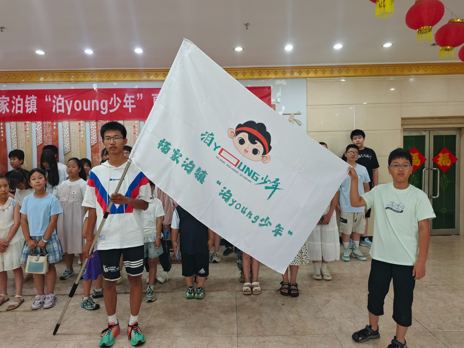 开营仪式在庄严而活泼的氛围中拉开序幕,杨家泊镇相关负责人在开营仪式上表示,“泊young少年”暑期夏令营是镇党委、政府关心关爱镇域未成年人健康成长、丰富未成年人假期文化生活的重要举措,希望各位“泊young少年”珍惜机会,用心体验,收获知识、友谊与勇气。随后,辛庄村、东尹村、看才村、西庄坨村四名领队共同上台接过营旗,爱“辛”、“尹”航夏令营的几位优秀小营员代表将“泊young少年”胸牌佩戴在新营员胸前,这一刻,信任、友爱、互助的夏令营精神在稚嫩的脸庞间悄然传递。