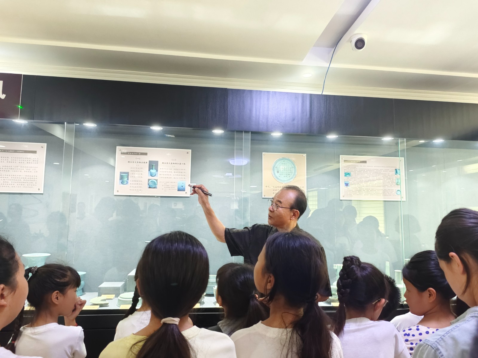 活动环节,小营员们在文化馆讲解员的引导下走进展厅,开启陶瓷探秘之旅。馆内以“千古陶韵”“两宋青风”“辽金异彩”等十大主题展厅为脉络,通过编年式展陈,系统梳理了中国陶瓷文化从实用器皿到艺术表达的演变历程。小营员们沿着历史的脉络,系统了解了中国陶瓷的辉煌发展史和本地陶瓷文化特色。他们驻足凝视珍贵的展品,认真聆听生动的讲解,积极提问互动,沉浸在千年窑火淬炼出的艺术与智慧之中。这节“行走的陶瓷科普课”,不仅让小营员们领略了中华优秀传统文化的博大精深,也激发了他们探索历史、传承文化的责任感。