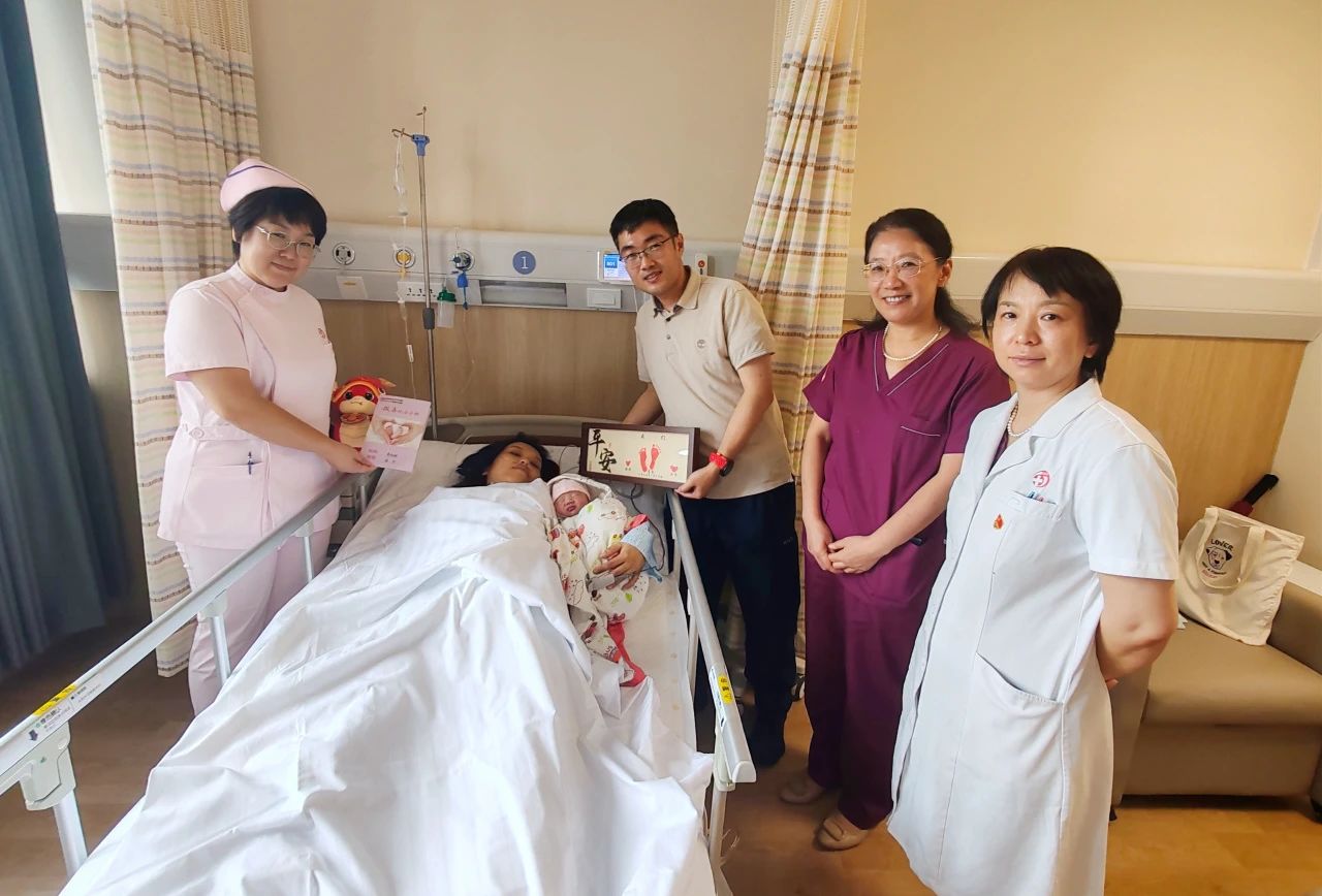 记者注意到,在干净温馨的病房里,婴儿床旁放着一张祝福卡片,上面印着一家三口的红色手脚印。新生命的到来,让全家人都沉浸在喜悦中。医护人员的祝福和一声声叮嘱充满温情。