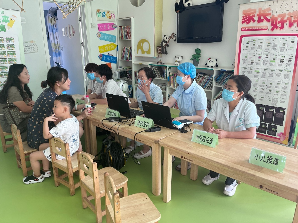 与此同时,一场场指导与服务相结合的“医育结合”活动也在各社区卫生服务中心和所签约托育机构的联合组织下陆续开展,中西医健康宣教、义诊、免费推拿等服务送进托育机构中。