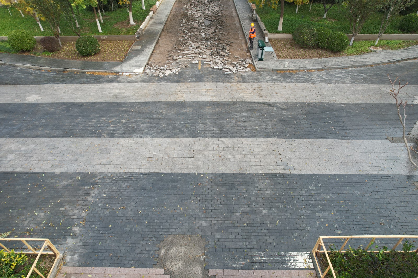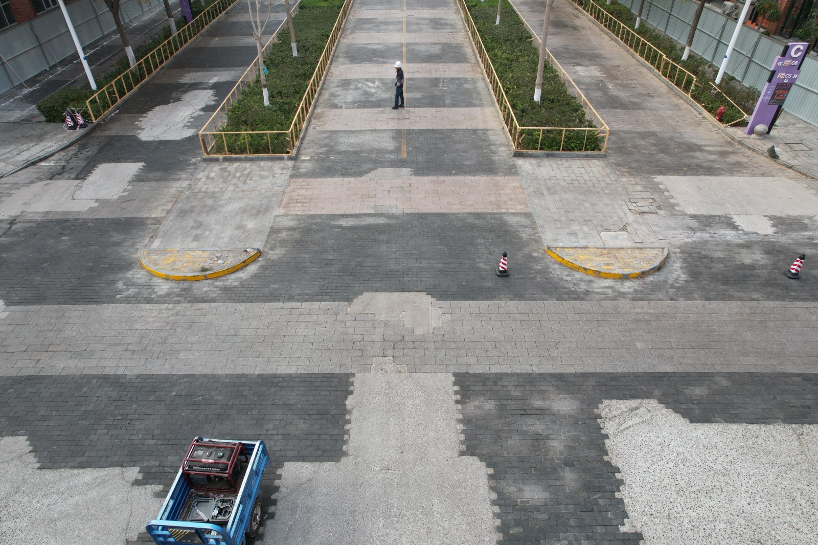 近两年,伴随着滨海—中关村科技园的发展,洞庭北路作为这片园区的主干道路,逐渐遇到了“年龄”瓶颈。原路面采用石材铺筑,在长期使用过程中,不少地方都出现了石材大面积松动、脱落等问题。为了能够进一步提高道路的通行安全性和舒适度,持续优化营商环境,天津经开区基建办专门针对该路段企业密集、车流量大等特点,对洞庭北路进行了系统性改造。