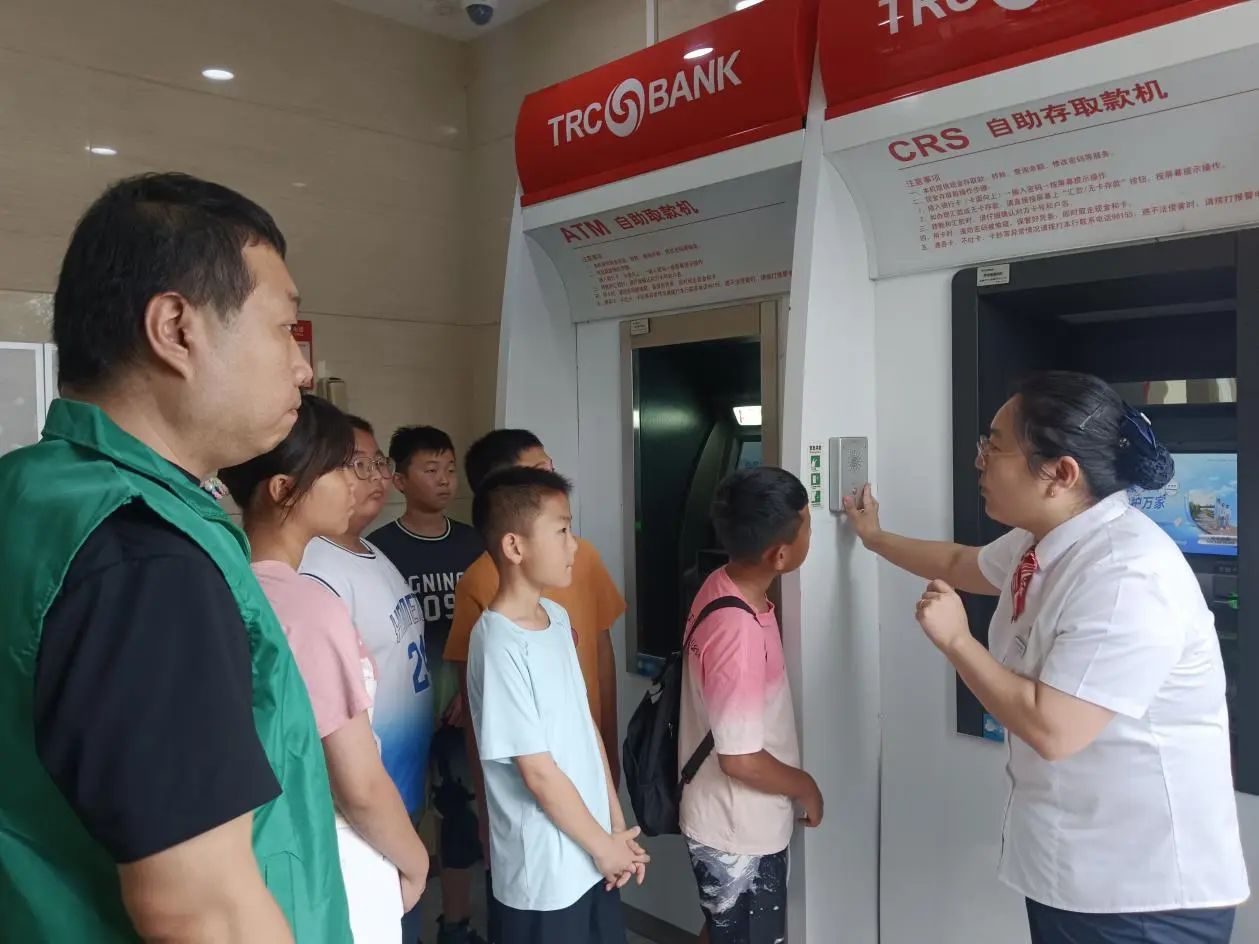 “钱是从哪来的?”“ATM机为什么会‘吐’钱?”面对孩子们的疑问,工作人员耐心回答,指导孩子们学会通过操作自动取款机查询余额、取款。此外,工作人员详细讲解并演示紧急呼救设备的使用方法,教会孩子们在遇到突发情况时如何及时寻求帮助。