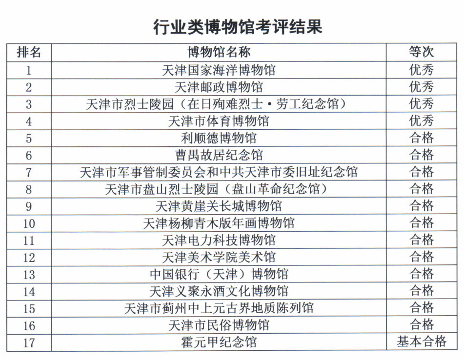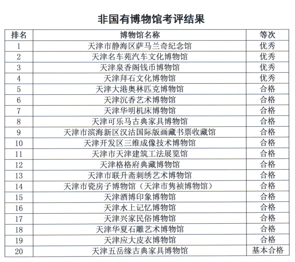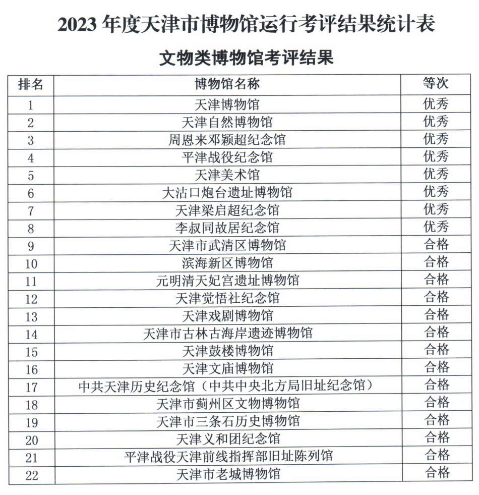 据了解,为加强博物馆行业管理,规范引导博物馆高质量发展,根据《博物馆条例》《天津市博物馆运行考评办法》等要求,2023年度天津市博物馆运行考评工作自2024年10月正式启动。考评组秉持着科学化的评估方法,以严谨、公正、全面的评估态度,采用定性评估、定量评估、案例分析等方法,经单位自评、材料预审、专家论证、现场复核等程序,完成本次考评工作。