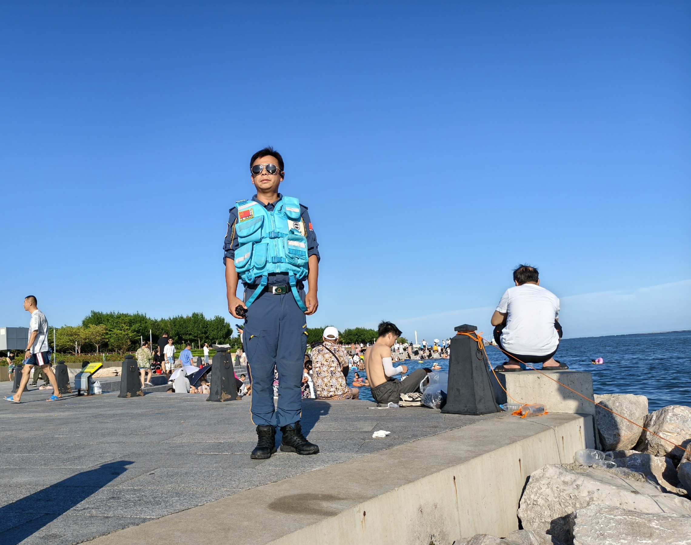 作为天津港保税区蓝天救援队的一员,每年5月至10月,管震都会带领队员沿着漫长的临港公园海岸线进行巡逻和保障。阳光炽热地洒在海岸边,海风夹杂着咸涩的味道,他始终敏锐地扫视着海面和岸线,密切关注着每一位在海中嬉戏的游客。夏日的岸线,游客如织,欢声笑语不断。但他深知,危险随时可能潜伏在这片看似平静的海域。他时刻留意着海潮的变化和游客的情况,一旦发现有异常就立即通过对讲机通知队员为游客排忧解难。遇到深入危险区域的游客,他总是耐心地讲解,提醒他们注意安全。在海岸线的保障点,他带领着救援队员们为受伤的游客进行伤情处理。即使节假日大家都在与家人阖家欢乐时,他依然坚守在岗位上。他知道,自己的坚守是为了守护更多家庭的幸福与安宁。他带领着队员们,用自己的行动为游客们筑起了一道安全的屏障。