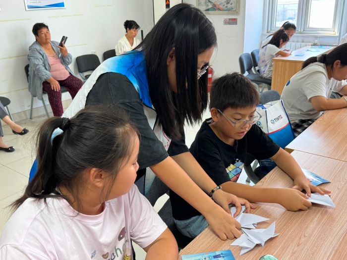 知识讲解环节结束后,进入了孩子们期待已久的手工制作活动。志愿者们带领孩子们折战斗飞机。志愿者们在指导折纸的间隙,再次巩固电信网络诈骗的要点,加深孩子们的记忆。孩子们围坐在一起,认真地跟着志愿者学习折纸步骤,不一会儿,一架架形态各异的战斗飞机便在他们手中诞生。看着自己亲手制作的作品,孩子们脸上洋溢着自豪的笑容。