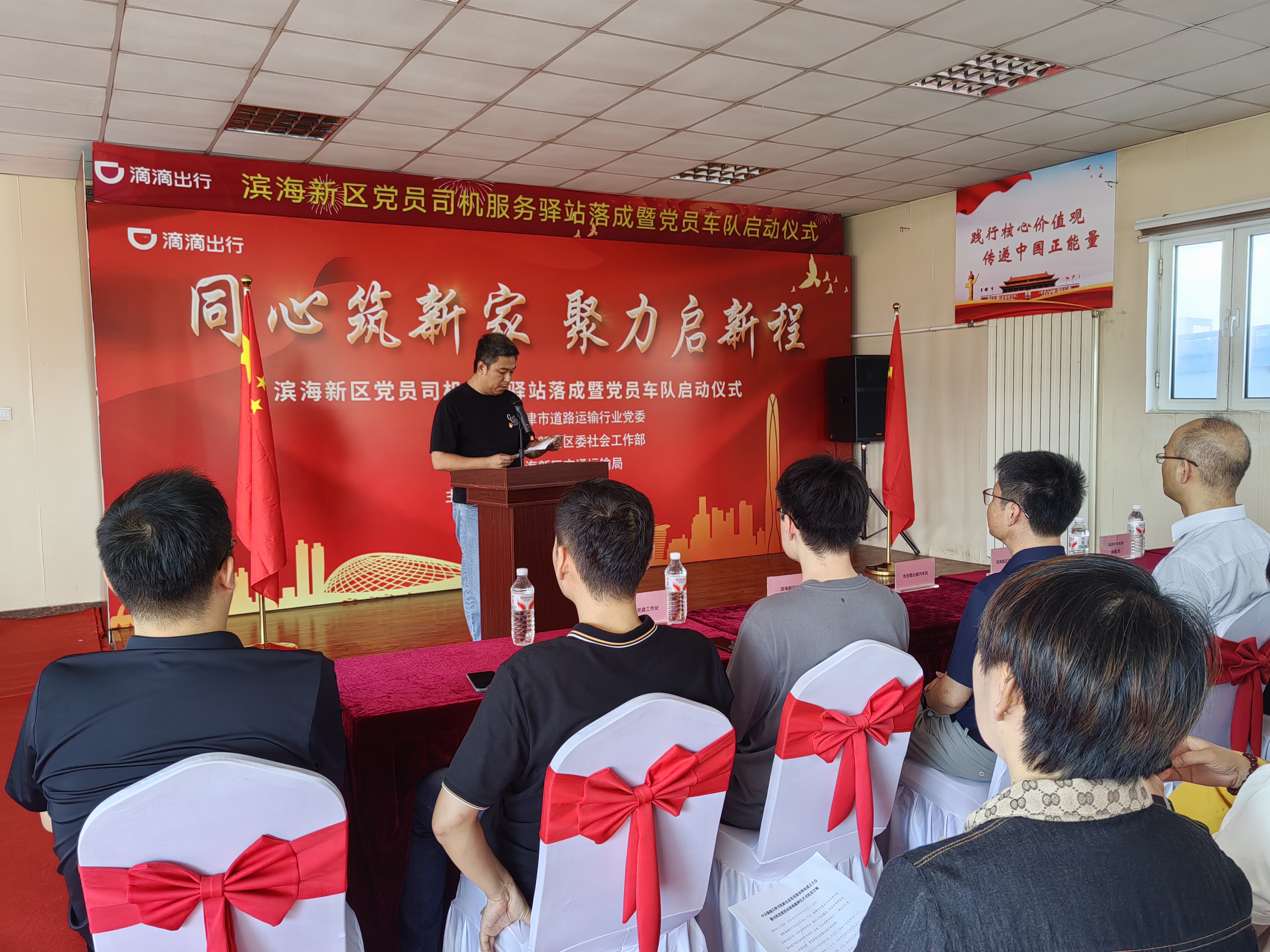 津滨网讯(记者 范炳菲 摄影报道)7月31日,“同心筑新家 聚力启新程”滨海新区网约车司机服务驿站落成暨党员车队启动仪式在滴滴出行举行,市交委、区委社会工作部相关负责同志出席,近50余名网约车司机参与活动。