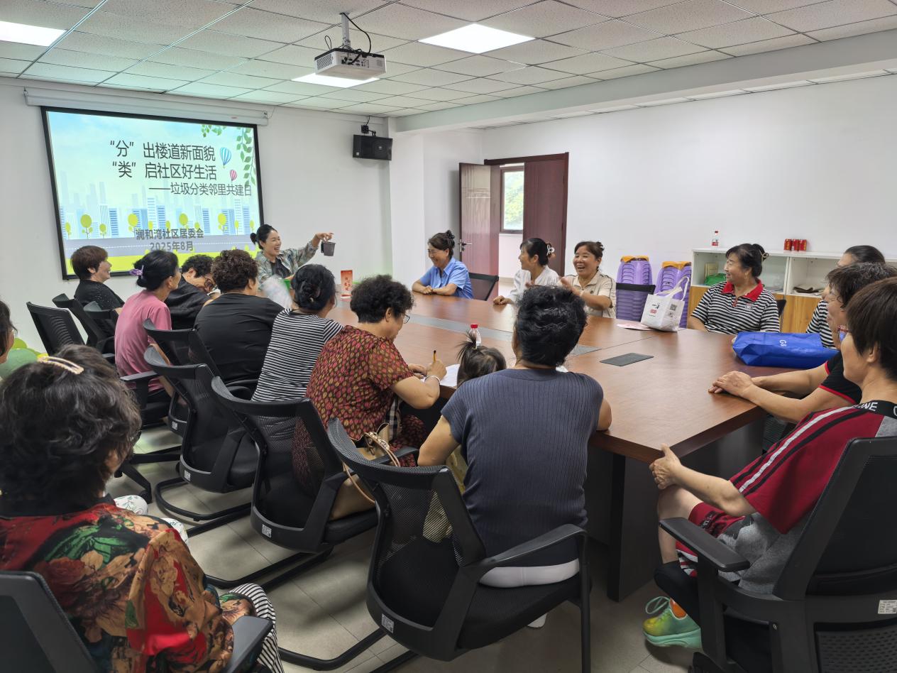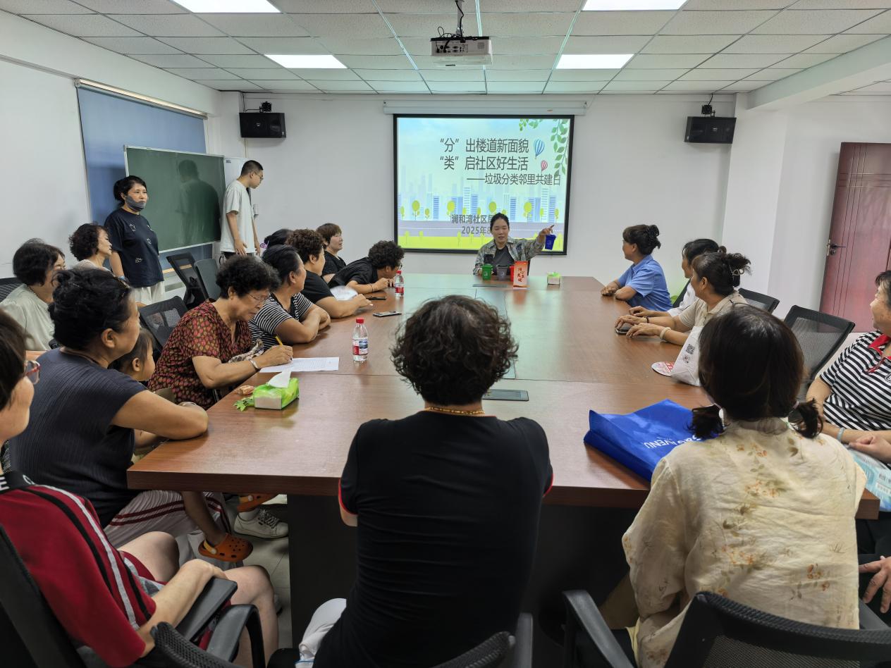 津滨网讯(记者 张玮 摄影报道)近日,新城镇澜和湾社区活动室内一场以‘分’出楼道新面貌‘类’启社区好生活为主题的垃圾分类邻里共建活动正在开展。社区居民围坐在长方形会议桌旁,神情专注地参与这场与日常生活息息相关的环保活动。