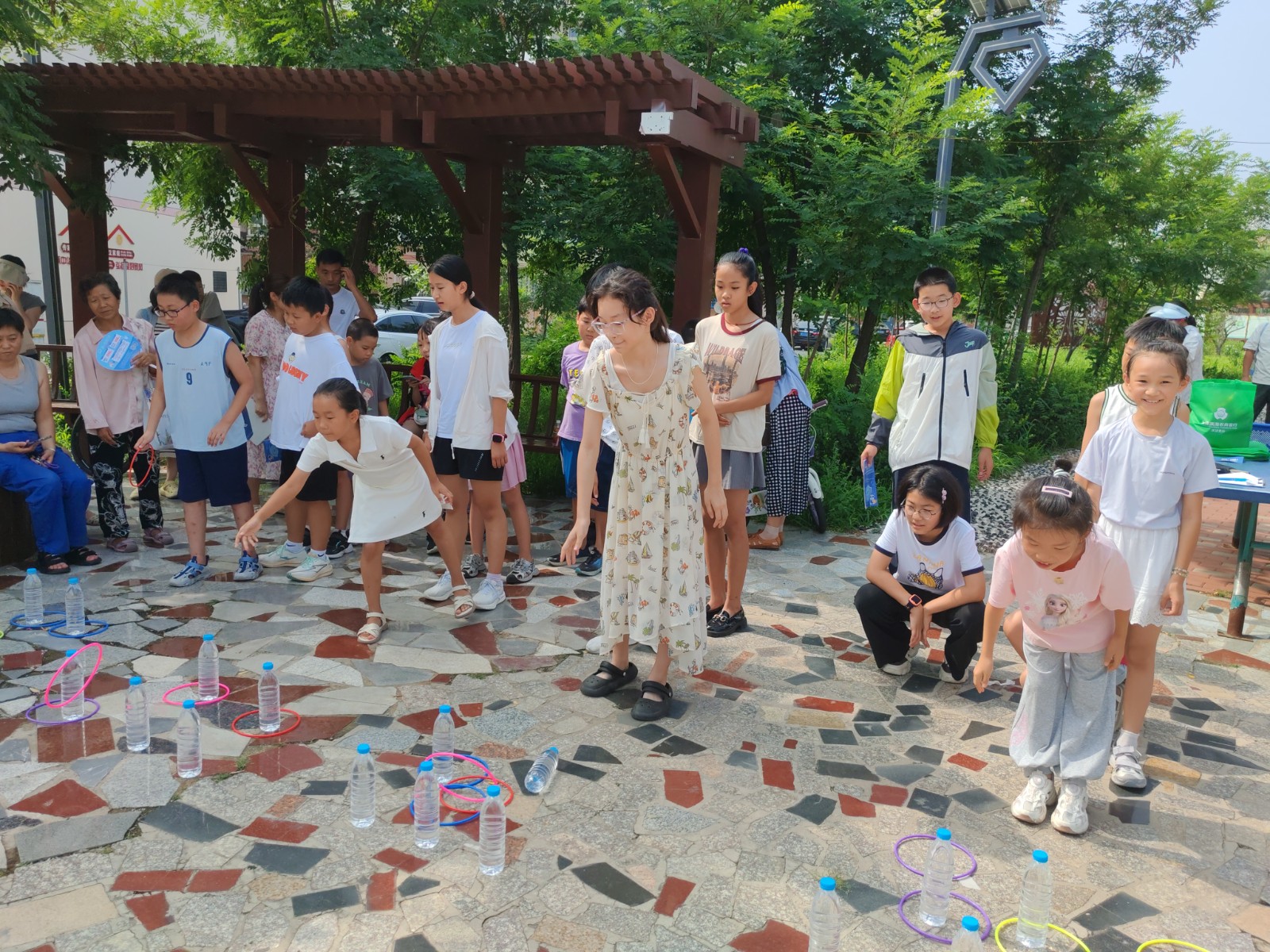 投壶与套圈则是“静与趣”的碰撞。孩子们站在投壶前,眯眼瞄准,屏息投出,箭矢稳稳落进壶中;在套圈区里,孩子们踮脚、瞄准、投掷,套中玩偶的欢呼与差一点的惋惜交织,没套中的孩子主动把圈递给更小的同伴:“你试试,说不定运气更好。”传递着分享与包容。