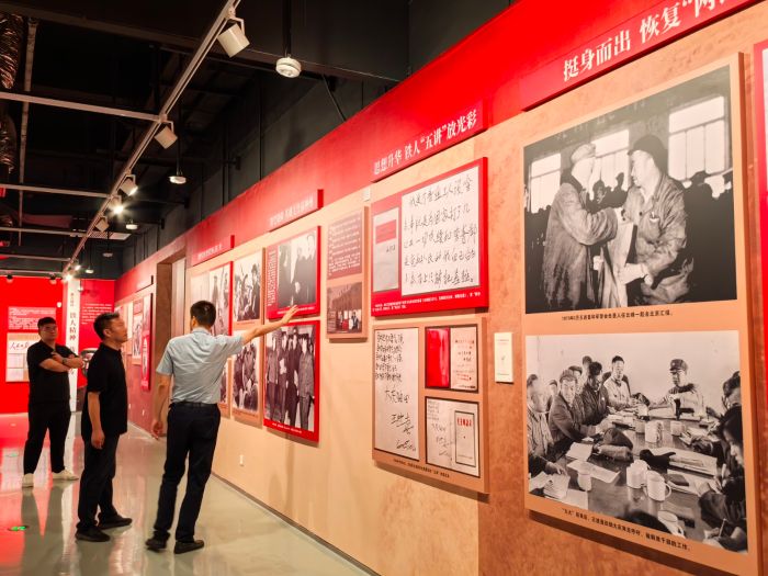 到达展览现场,泛黄的老照片、珍藏的影像资料构成时空隧道,全景呈现“历经苦难赤诚报国”“为国分忧艰苦创业”等六大板块,讲述着“铁人”王进喜的传奇人生,从贫苦出身到石油战线的佼佼者,那是奋斗的一生,是奉献的一生。党员们不时驻足凝视,认真聆听讲解,相互交流感悟。在那些艰苦卓绝的日子里,王进喜手持铁锹,肩扛重担,以身搅拌泥浆,用血肉之躯诠释了什么是真正的“铁人”精神。