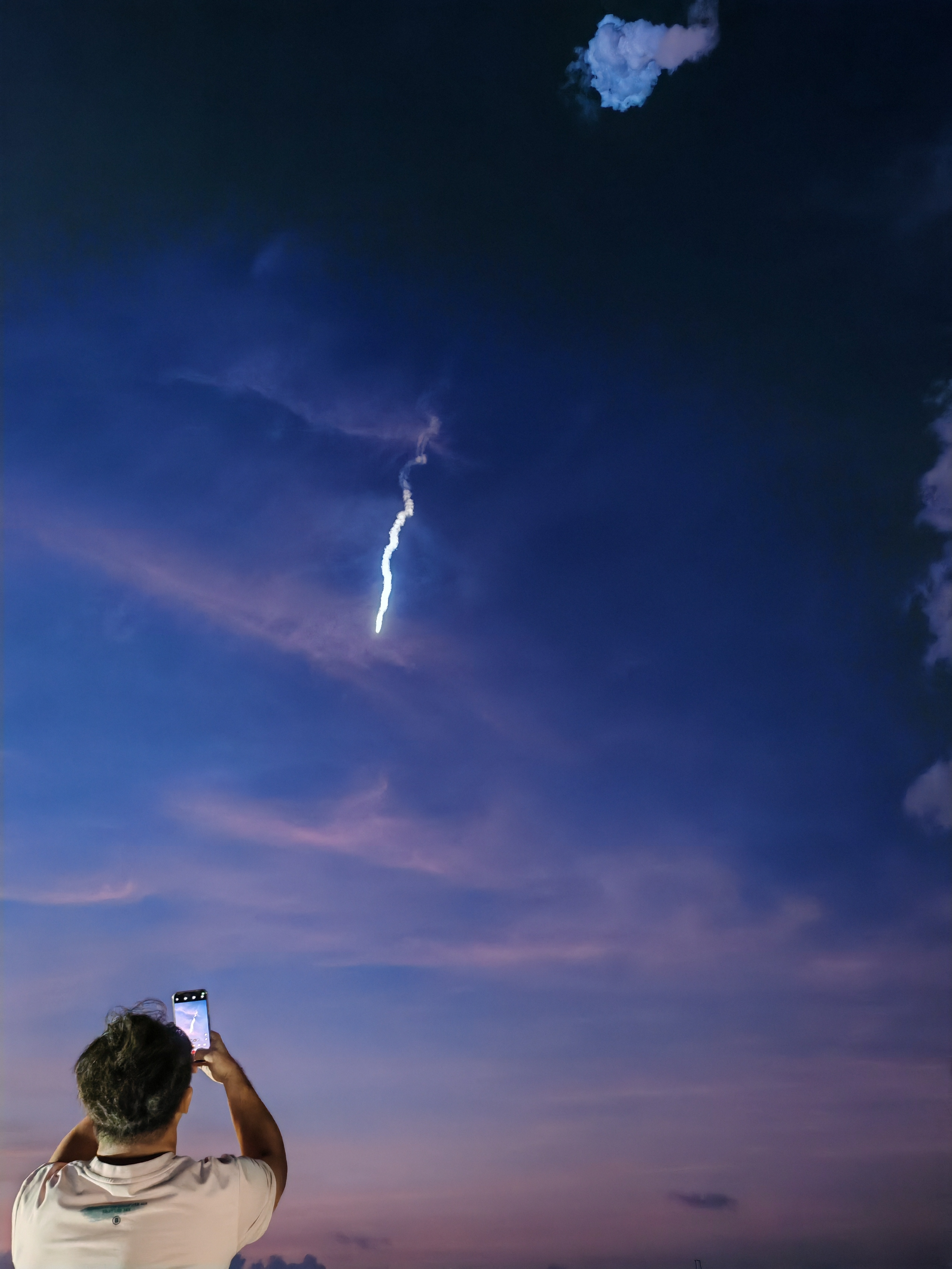 当火箭的尾焰在天际渐渐消散,符锐的身边也开始热闹起来——大家分享着各自拍到的画面。“只要火箭还在飞,我们这些‘追’火箭的人,就永远有期待、有热情。”符锐告诉记者,“我女儿是文昌首飞的那一年出生的,我们也希望她能够好好学习,往中国航天这个方向去发展,成为我们中国航天的下一代接班人!”(部分图片由符锐提供)