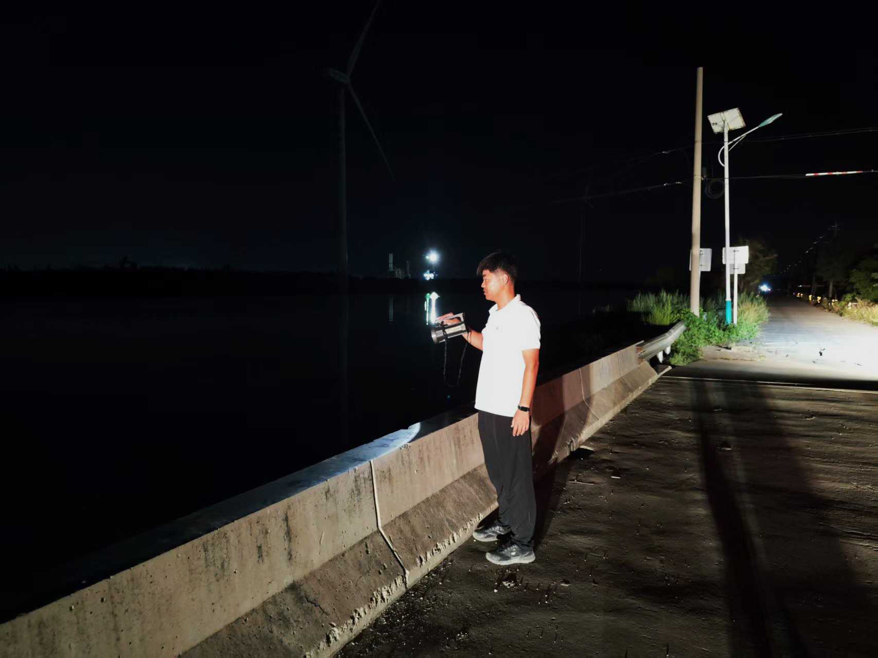 荒地排河是南部片区的一条重要排涝通道,河长制事务中心加强人手,安排专人24小时值守荒地排河挡潮闸,并在现场配备应急发电机等设备,根据潮汐规律及时启闭闸门,利用低潮期最大限度降低水位,让河道始终保持超低水位运行,确保降雨过程中城区涝水能够快速排入大海,有效缓解内涝压力。
