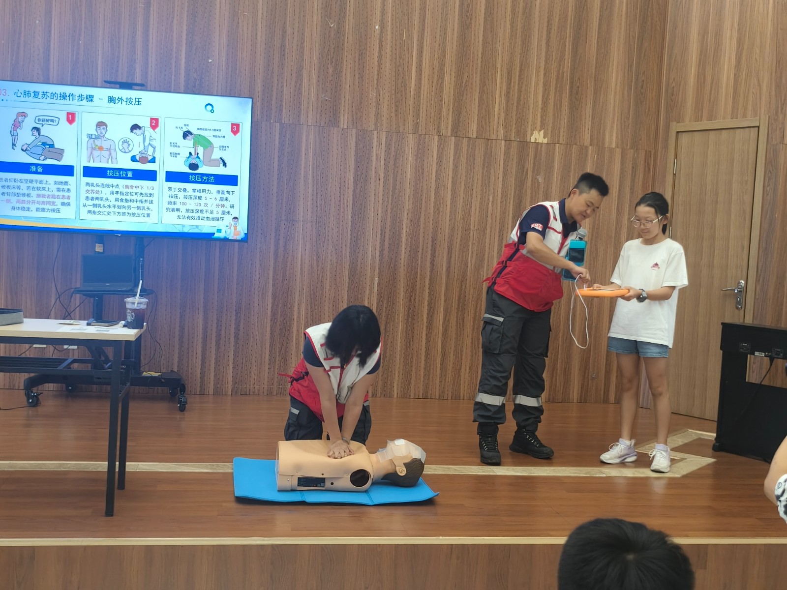 青少年组的课程内容更注重实用性与操作性。救援人员系统讲解应急避险原理、意外伤害处理原则后,重点示范了止血包扎、骨折固定、心肺复苏等专业技能。学员们分组进行实操练习,在救援人员的一对一指导下,反复练习绷带缠绕、三角巾包扎的正确手法,模拟胸外按压和人工呼吸的标准动作,现场互动频繁,演练氛围紧张而有序。培训合格的青少年学员均获得了急救员证,为日常应急处置增添底气。