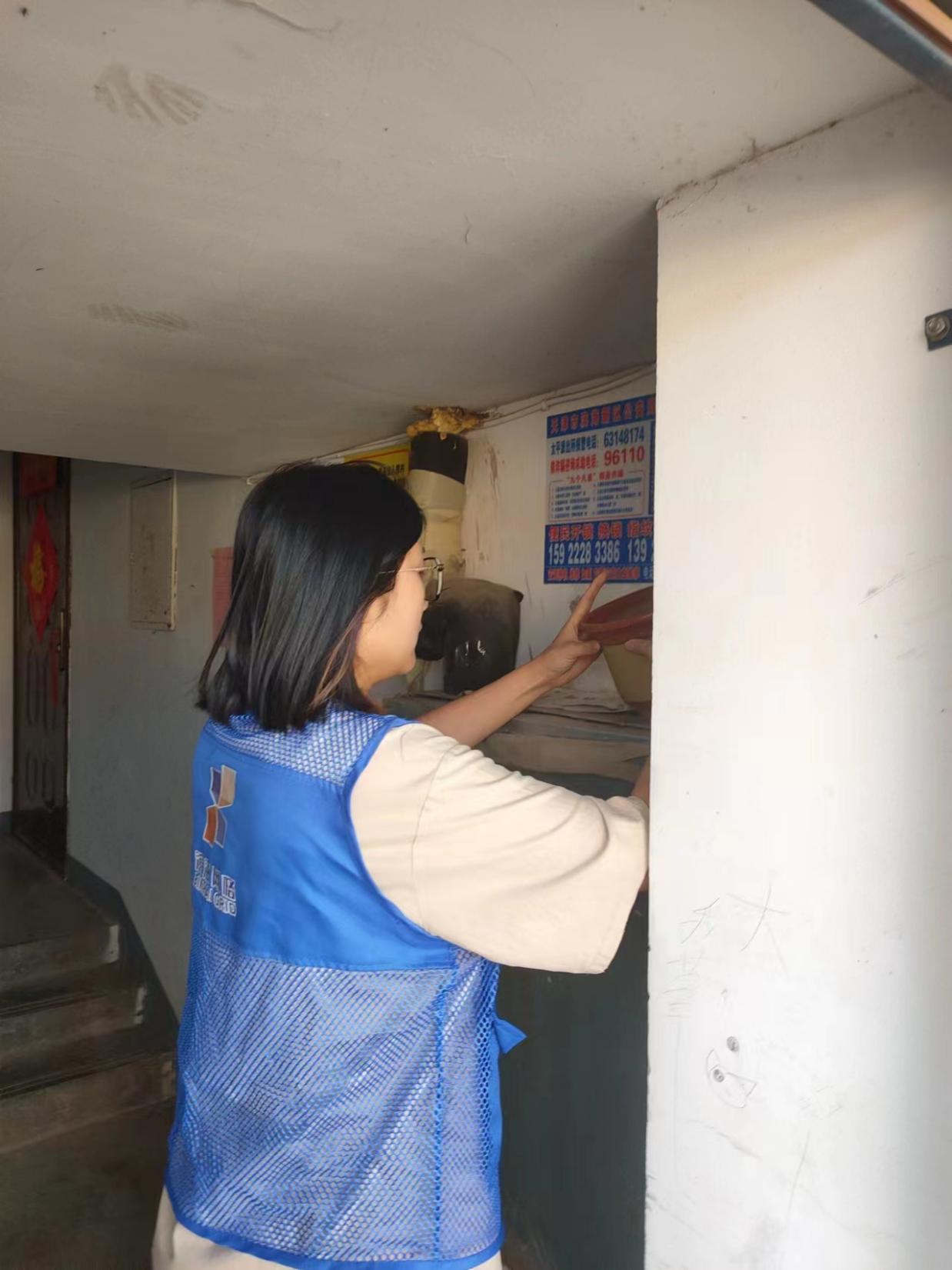 整治前,社区网格员通过“线上+线下”多渠道宣传,居民微信群推送通知、公告栏贴提示、网格员入户讲解,向居民普及楼道堆物的火灾隐患,呼吁限期自行清理家门口杂物,引导大家主动配合。行动中,网格员还与社区工作人员组成小组逐栋排查,对废旧家具、纸箱、闲置自行车等堆物登记并联系居民清理;无人认领或逾期物品统一清运。同时,还全面清扫楼道小广告、灰尘,检查照明与消防器材,确保设施完好。