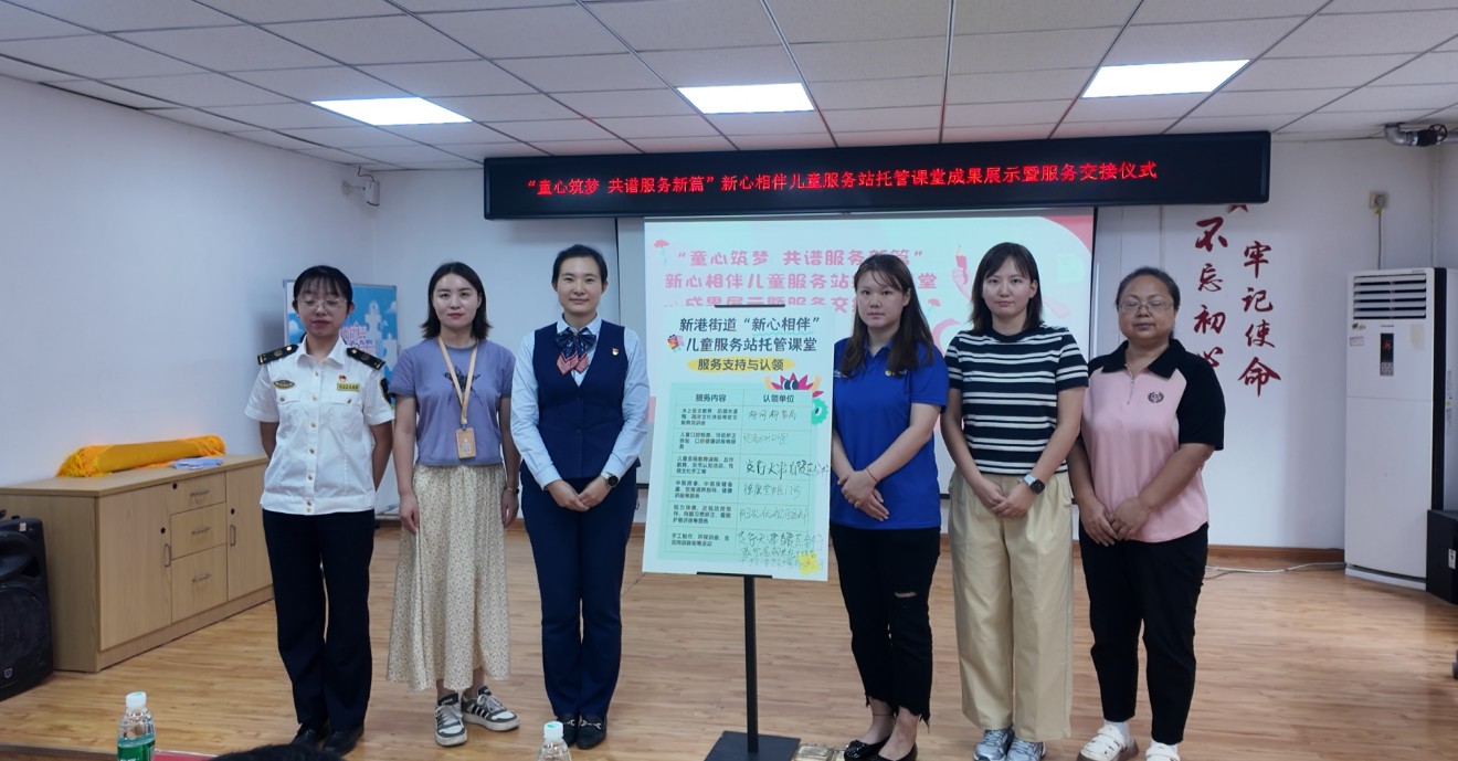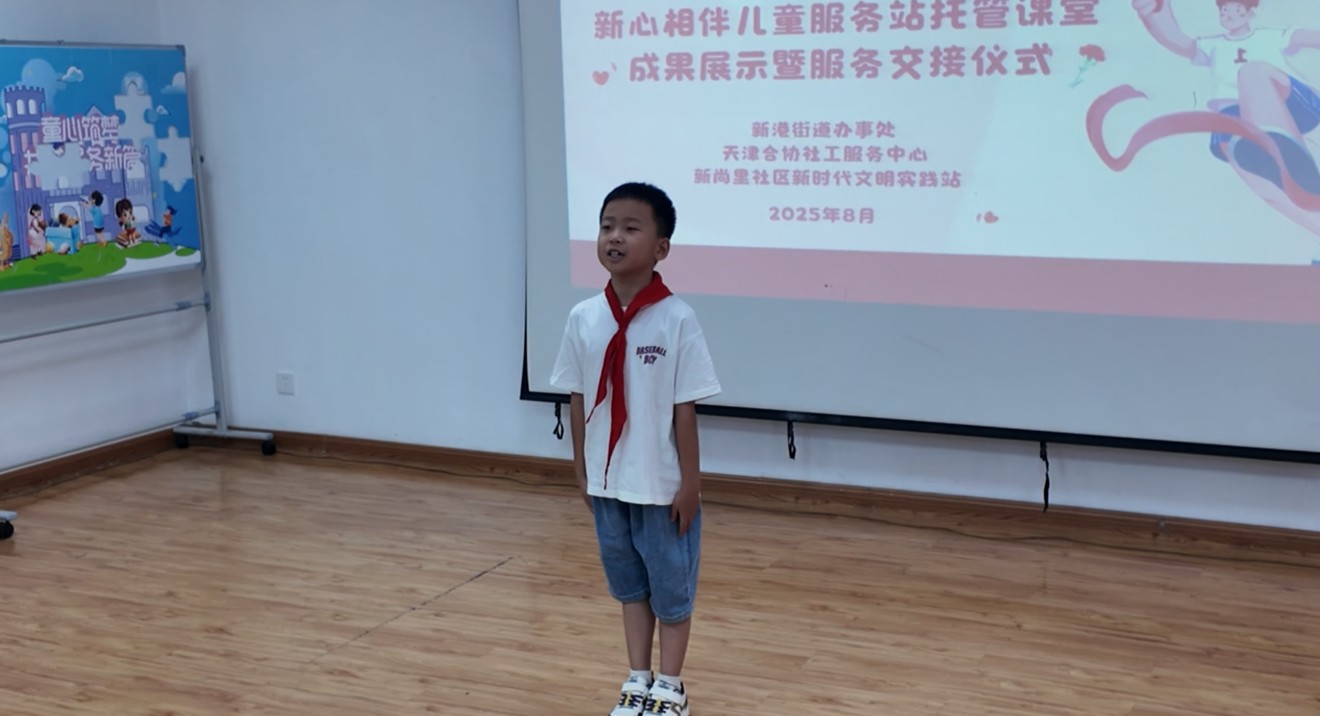 津滨网讯(记者 边新宇 摄影报道)为全面展示辖区儿童服务站建设成果,深化与共建单位的合作机制,8月20日,新港街道新尚里社区开展“童心筑梦 共谱服务新篇”新心相伴儿童服务站托管课堂服务成果展示暨服务交接仪式。本次活动由天津市合协社会工作服务中心联合新尚里社区依托新港街道爱心港湾助孤服务项目共同策划,街道相关负责人、共建单位代表、社区居民及儿童等多方参与,共同见证社区儿童服务的新阶段。