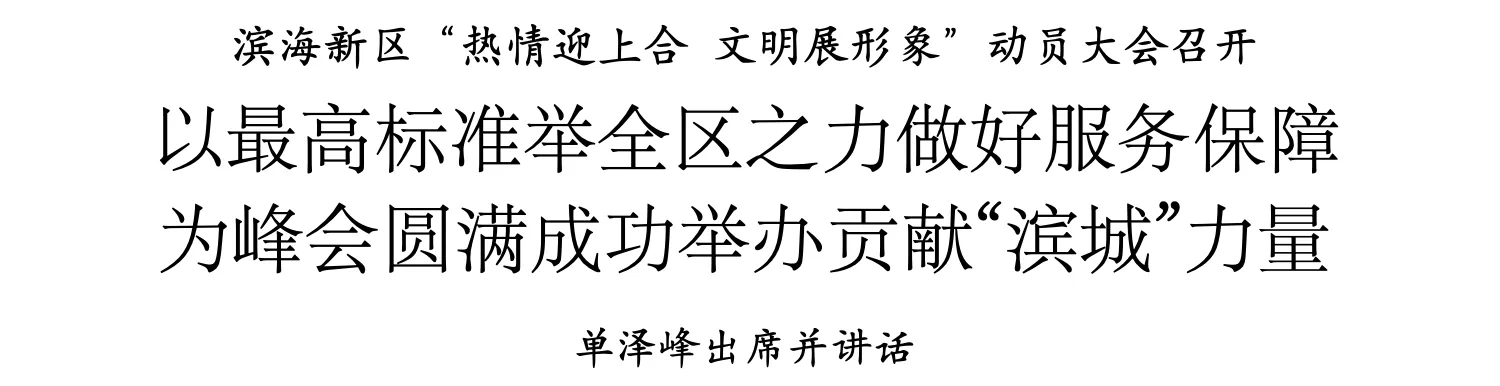津滨网讯(记者 王建喜 杨静如)按照市委、市政府统一部署和区委工作要求,8月22日,滨海新区召开“热情迎上合 文明展形象”动员大会,深学笃用习近平外交思想,深入贯彻落实习近平总书记关于办好天津峰会的重要指示要求,对各项服务保障重点任务进行再动员再部署,以最坚决的态度、最周密的筹划和最严格的标准履职尽责,确保周全安全、高质高效完成服务保障工作,为上合组织峰会圆满成功举办贡献“滨城”力量。区委副书记、区长单泽峰出席会议并讲话。