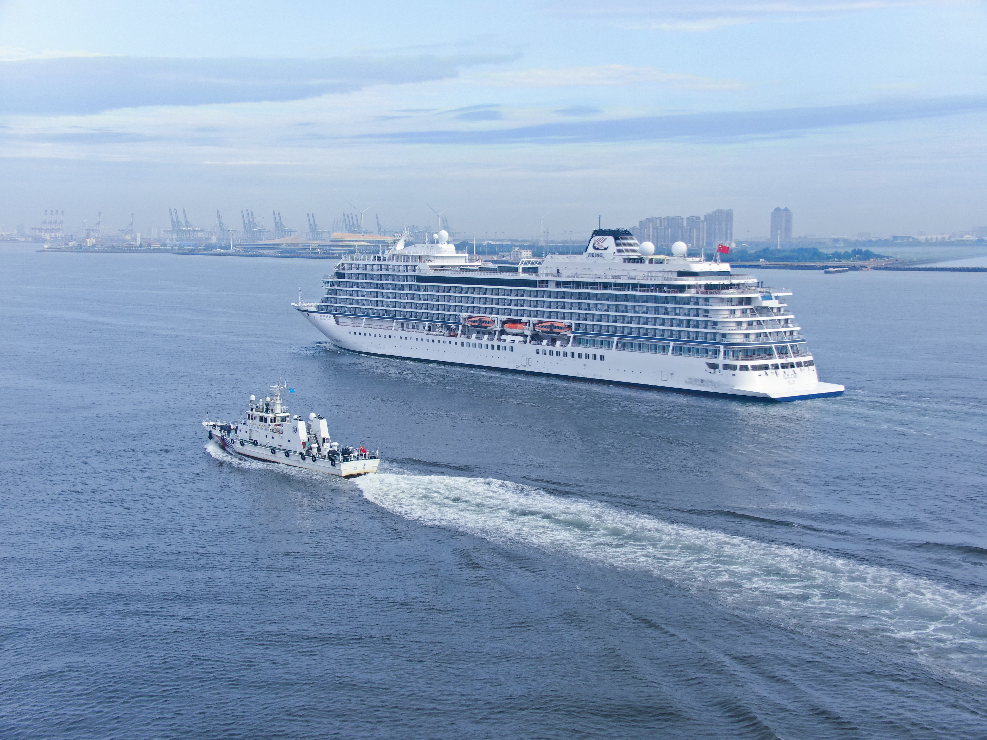 清晨6时30分左右,载有200余名乘客的“招商伊敦”号邮轮缓缓驶入天津港主航道,东疆海事局的“海巡0208”船第一时间来到船侧执行护航任务。与此同时,智慧海事监管系统对其进行全程动态跟踪,海巡船配合无人机巡航、电子巡航等立体监管手段“全方位”确保邮轮快速安全靠港。