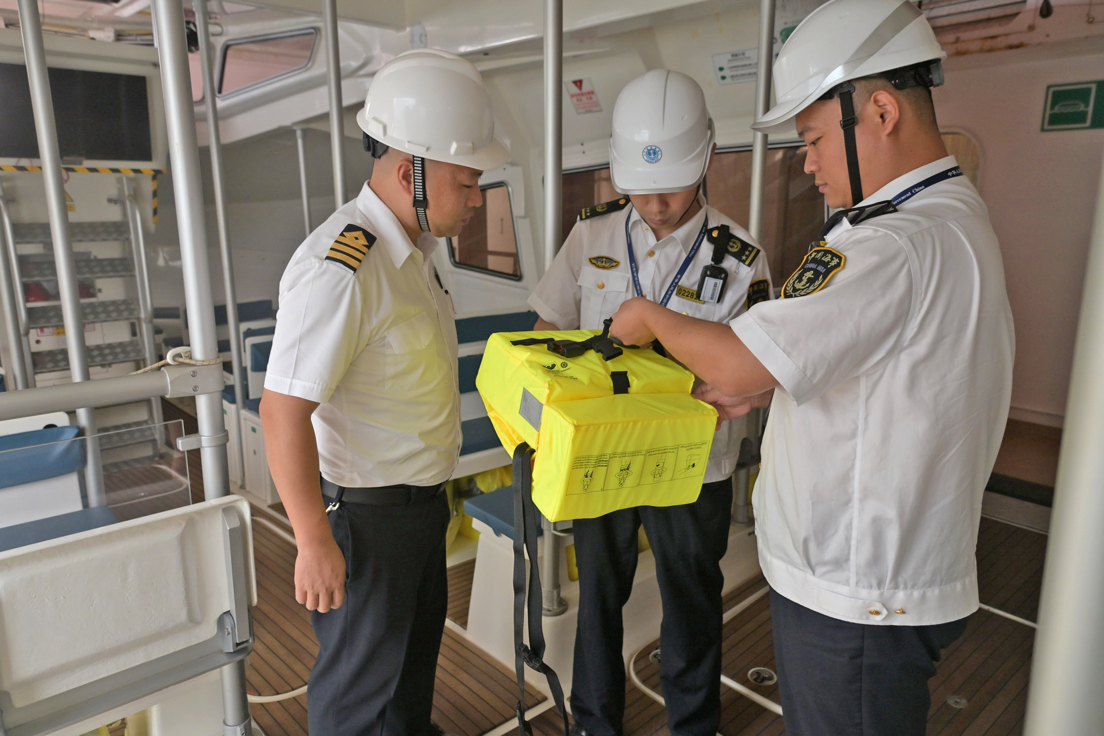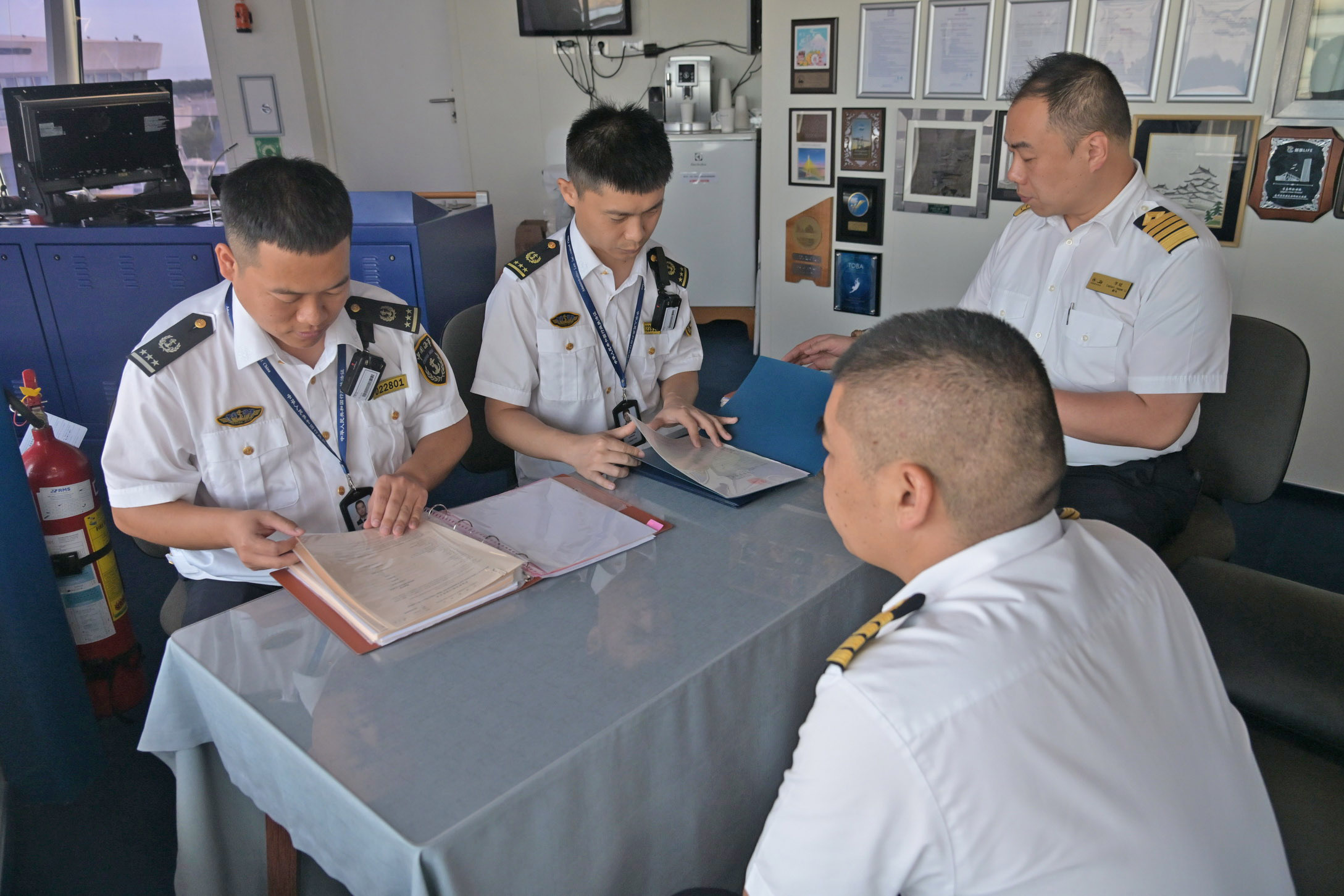 “欢迎您们顺利到达天津,我们将对船舶开展相关监督检查,请您们提供……”海事执法人员重点对船舶证书、船舶航行设备、消防救生设备、乘客登乘设施、船舶防污染状况等方面进行了详细地检查,同时向船方宣贯了相关法律法规要求和防范商渔船碰撞的风险提示。过程中,他们采取了模块化检查的方式,系统排查潜在安全隐患,从严把关船舶安全技术状况,为“招商伊敦”号提供一次真正的“私人订制”式安全体检。