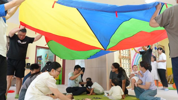 记者在现场走访时看到,除了宝妈,很多宝爸也积极参与到育儿活动当中。通过半日的体验活动,家长们实地探访了机构的环境设施和人员配备情况,沉浸式体验了机构的教育理念和育儿方法,在机构精心设计的丰富多彩的课程体系中,发掘出自家宝宝的语言表达能力、动手能力、思维能力和社交能力发展方向,在欢乐时光中发现了一个不一样的“萌宝”。“宝宝现在9个月,平时是奶奶在照顾。通过和老师的深入交流,我们获得了很多科学育儿的知识,回家我们再实践一下。”六六妈妈樊女士告诉记者,通过亲子体验,她对托育也有了更深层次的了解和认识,等宝宝再大一点儿会考虑送到专业托育机构。