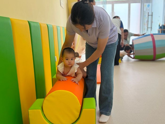 “我们的孩子来到托育机构,不是为了简单的托养,也是更好地辅助他们发育,有专业老师的陪伴,多方位助力孩子综合发展。比如,感统是一个孩子发育的关键,包括后期到幼儿园、小学的一个成长关键期,我们的老师都经过了感统培训,不仅仅是以保育员为主。”东方启辰托育中心运营老师杨洋介绍, 东方启辰托育中心去年9月份建成,今年4月份在区卫生健康委完成备案,是新河街道首个备案运营的托育机构。“今年新区政府发放免费托育服务体验券之后,每周都陆续有家长来到中心咨询和体验,目前已经有体验之后决定入托的宝宝,我们也正式开启了托班运营,将来也会根据入托情况考虑调整和增加托位。”杨洋说。