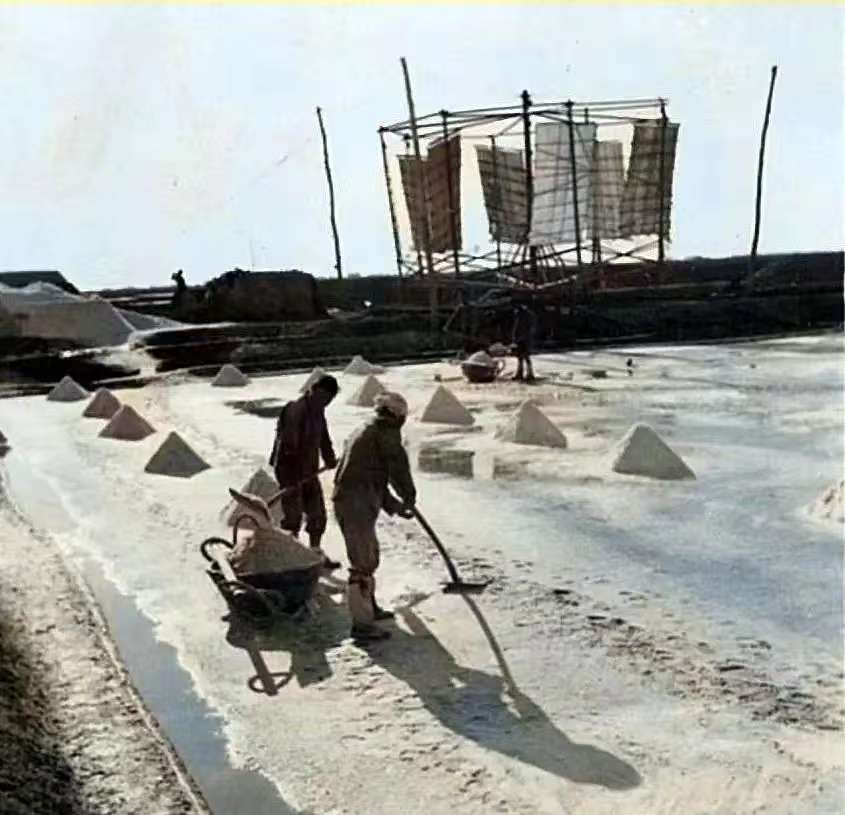 霎时间,群众像潮水一般奔向盐坨,刨的刨,装的装,背的背,几里地长的运盐大道上,扛的、背的、驮的,川流不息。虽然没有说笑声,但从人们的表情上可以看出内心的喜悦。战士们也个个精神抖擞,干劲十足,哪儿人少,他们就往哪儿帮忙;谁扛着吃力,他们就帮着搭肩。十来米高的盐坨,在唰唰的刨盐声中渐渐地矮了下来。