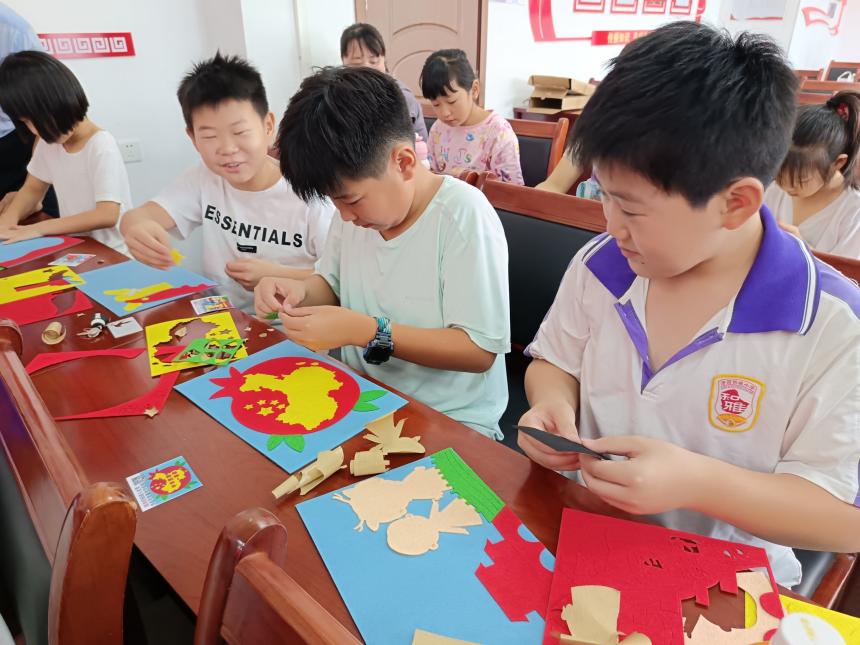 在手工制作环节,孩子们在社区工作人员的耐心指导下,拿起五彩斑斓的不织布材料包,发挥天马行空的想象力,认真裁剪、拼接、粘贴……不一会儿,一幅幅充满童趣和民族元素的贴画作品逐渐诞生。活动现场欢声笑语不断,不仅锻炼了他们的动手能力,更在制作过程中加深了对多元一体中华文化的感知和热爱。
