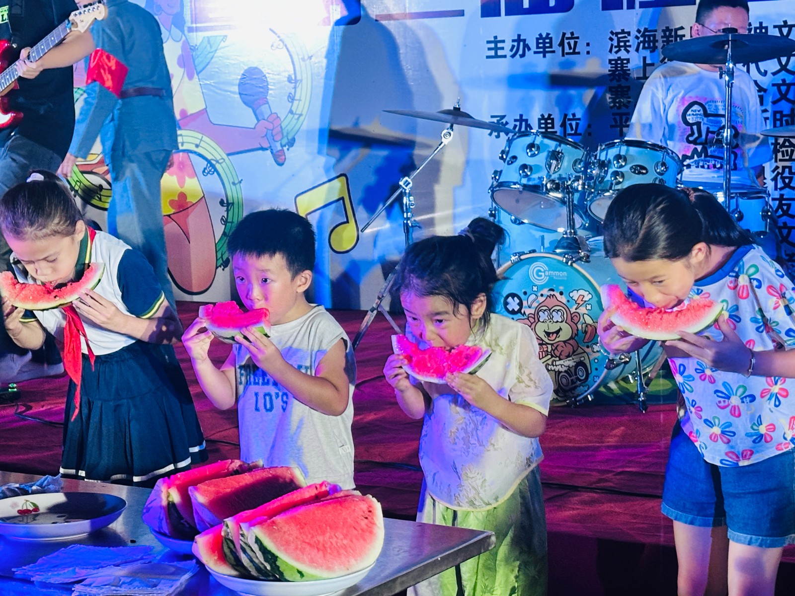 本届嘉年华的互动环节设计别出心裁,其中最为火爆的当属“趣味吃西瓜大赛”。比赛消息一经宣布,便吸引了众多小朋友踊跃报名。随着一声令下,小选手们埋头“苦干”,各显其能,逗趣的表情、飞快的速度引得在场观众开怀大笑,掌声、加油声、欢呼声此起彼伏,将现场气氛推向高潮。这场充满童趣的比赛不仅为孩子们带来了夏日的清凉与快乐,更成为了连接家庭、活跃邻里关系的纽带,留下了难忘的童年记忆。
