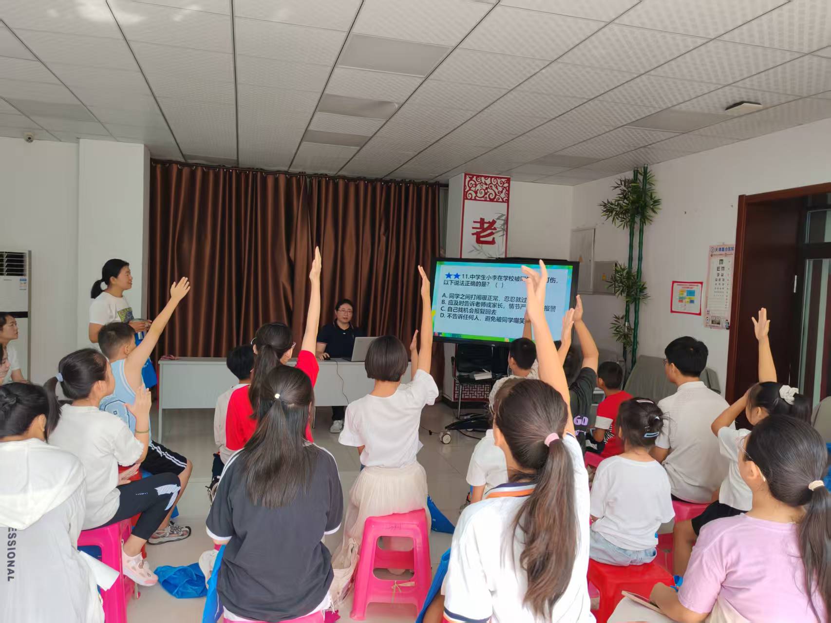 在讲解校园欺凌相关内容时,毕律师通过还原典型案例场景,让大家直观感受到欺凌行为对受害者身心造成的双重伤害,同时明确了施暴者需承担的法律责任;针对网络安全话题,她提醒大家要警惕网络诈骗陷阱、坚决拒绝传播不良信息,树立理性用网意识,努力成为“知法、守法、懂法、用法”的好少年。整场讲座以讲故事、析风险、教方法的生动形式,将法律知识转化为易懂的生活指引。现场青少年听得认真、记得扎实,还不时主动举手提问,互动氛围十分热烈。
