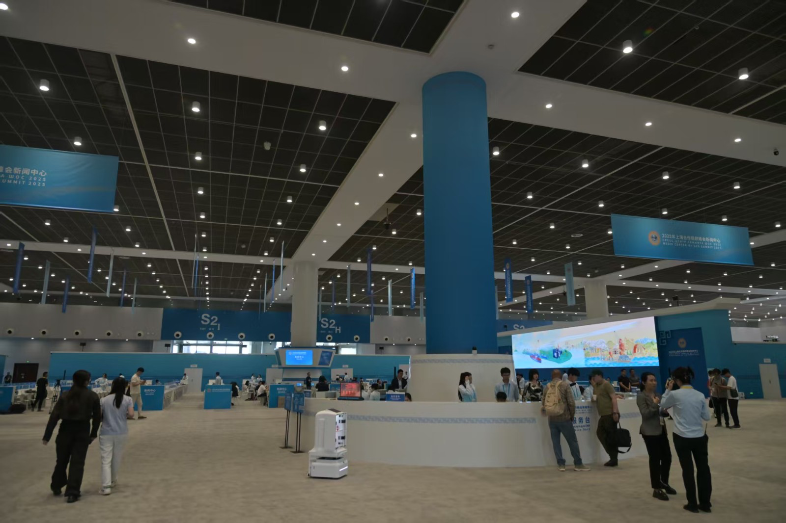 2025年上海合作组织峰会新闻中心位于天津梅江国际会展中心二期,包含综合服务区、媒体公共工作区、媒体专用工作区、新闻发布区、广播电视技术服务区、科技文化互动展示区、媒体餐饮与茶歇区等区域,可为全球3000余名记者提供广播电视、新闻发布、官方图片、峰会资讯、科技文化展示、餐饮及交通等全链条报道支持。