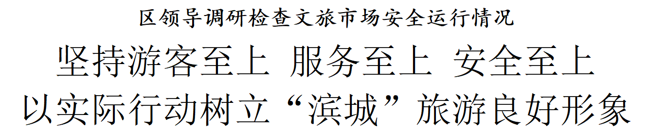 在调研检查过程中,单泽峰强调,全区有关单位和部门要进一步增强服务意识,从安全保障、贴心服务、消费福利、品牌监督等方面充分展现“滨城”待客诚意,以实际行动树立“滨城”旅游良好形象;要进一步树牢安全理念,强化重点行业领域风险隐患排查整治、社会面整体防控和城市运行安全保障,全力守护文旅市场安全有序、游客旅途平安顺心;要进一步提升宣传质效,抢抓峰会举行的难得契机,加大媒体宣传和舆论引导力度,讲好中国故事、天津故事、“滨城”故事,吸引更多海内外游客来到“滨城”、领略“滨城”、喜爱“滨城”。