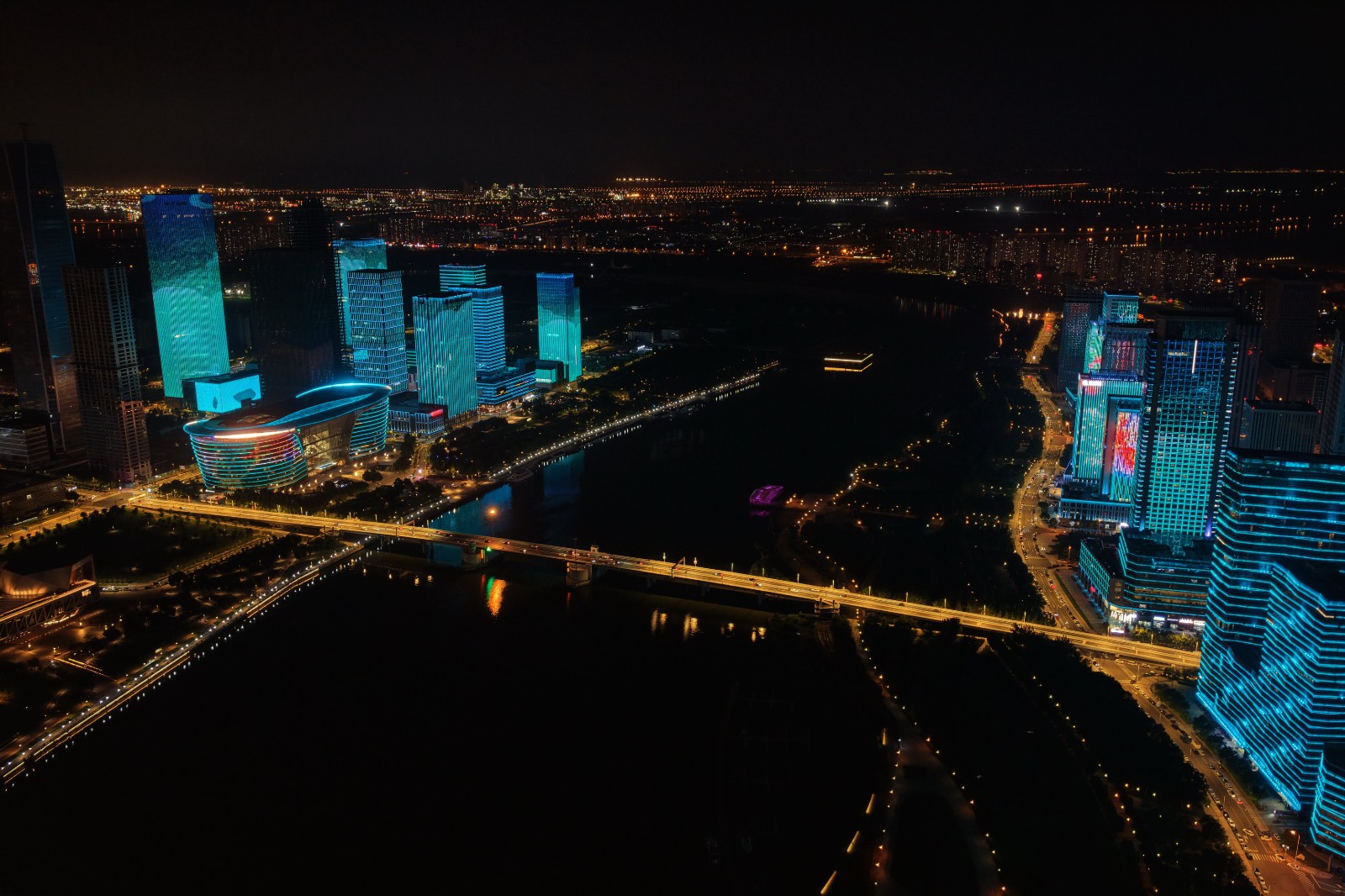 津滨网讯(记者 贾磊 摄影报道)2025年上海合作组织峰会即将在天津启幕,近日,滨海新区于响片区海河两岸焕新颜,夜晚的楼宇建筑灯光璀璨绽放,五彩斑斓的灯光秀持续点亮夜空,为即将到来的上合峰会营造出热烈浓厚的氛围。随着上合峰会临近,这座城市正以开放、热情的面貌,向世界展现独特魅力。未来几日,海河两岸的灯光还将持续闪耀。